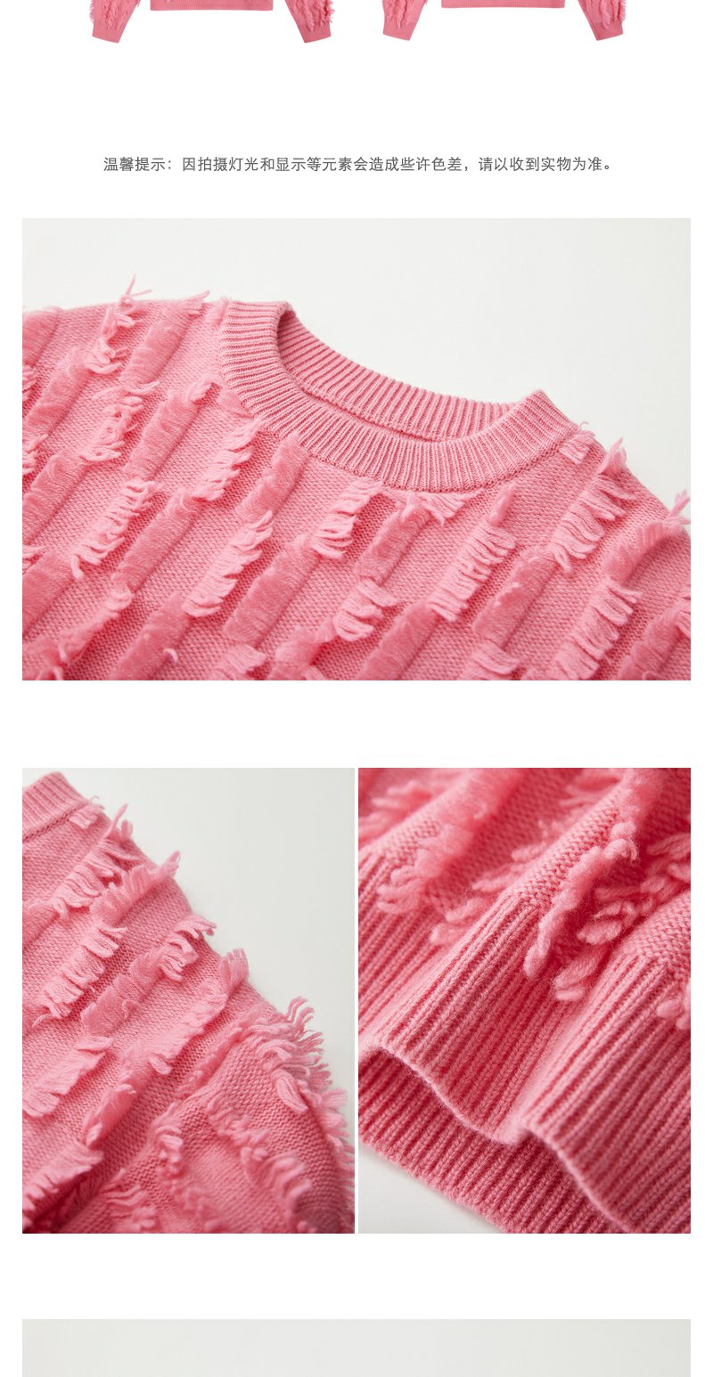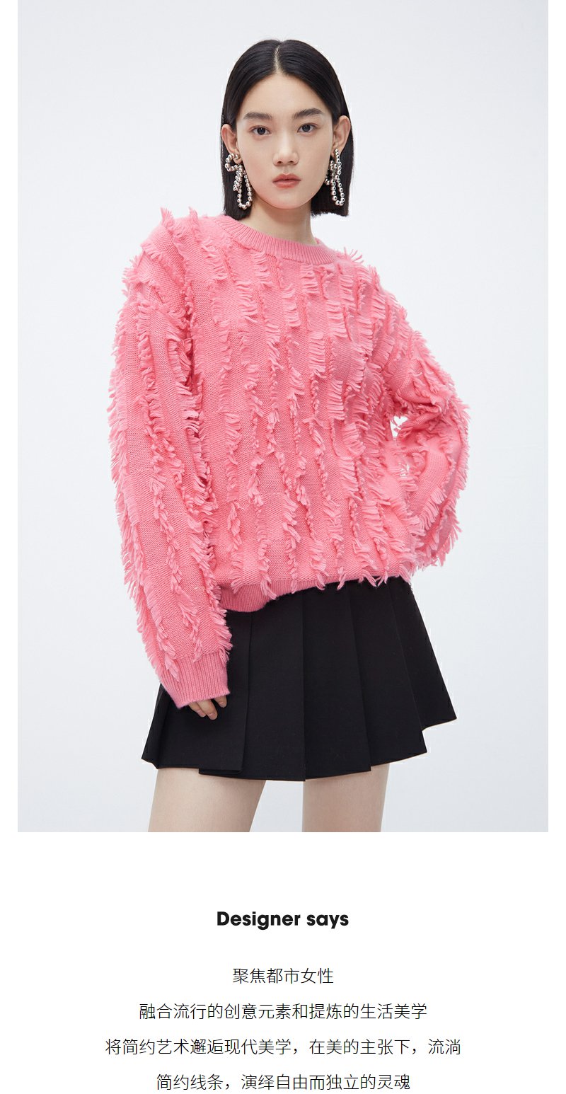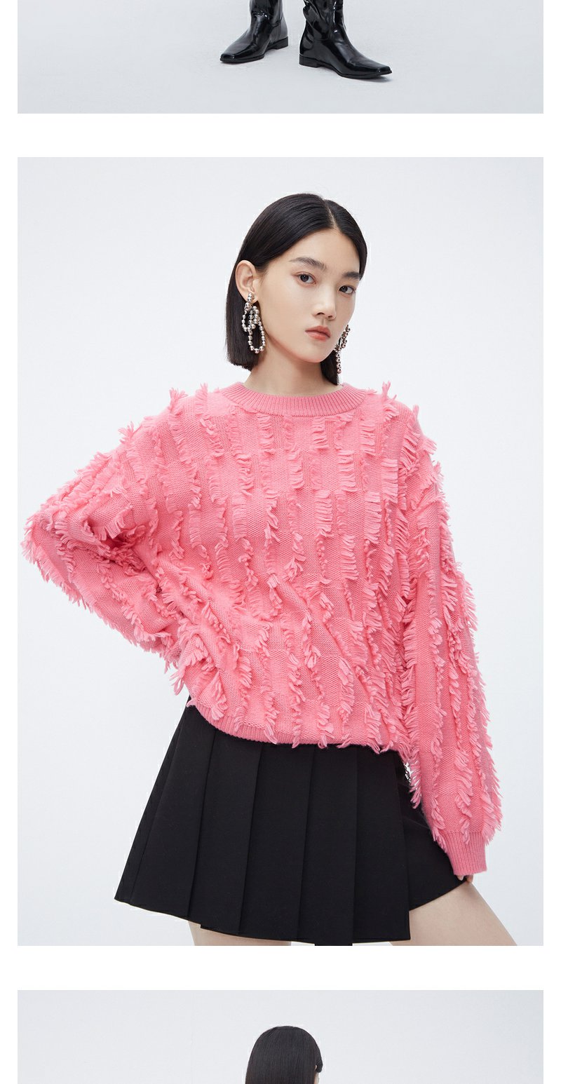 NEELLY纳俪商场同款粉色流苏毛边毛衣女冬新款时尚套头好看羊毛衫N23112A01159