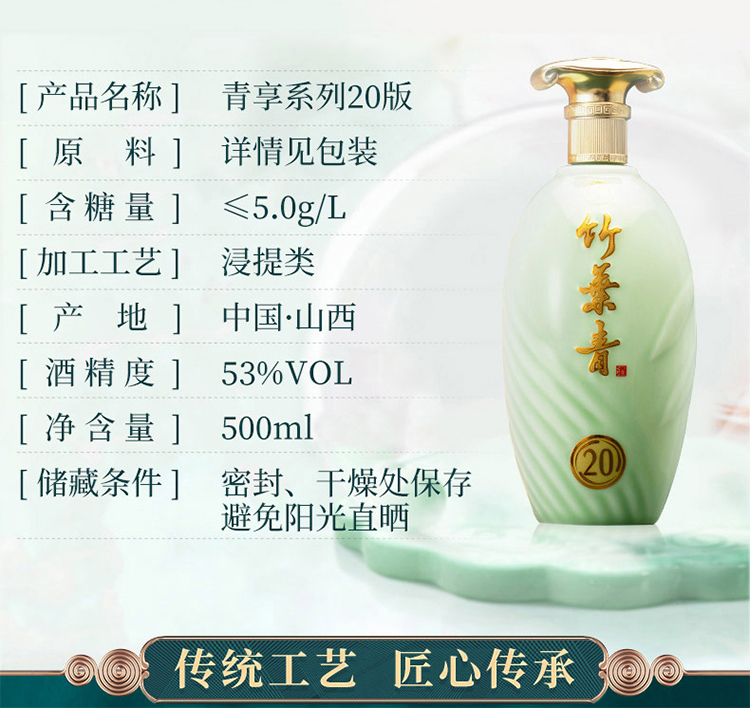 【整箱6瓶】53度竹叶青酒-青享20 500ML