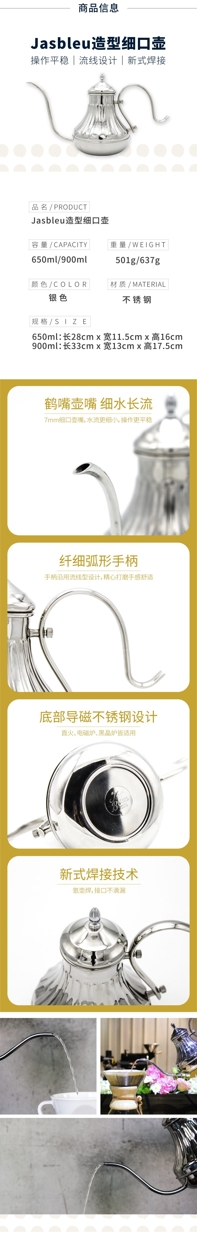 【器具】Jasbleu 精品咖啡手冲壶造型长嘴滴漏式细口壶 咖啡壶