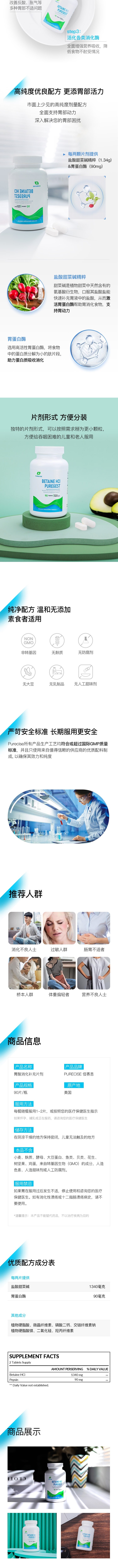 高剂量盐酸甜菜碱+胃蛋白酶片剂 Betaine HCI 90片 补充胃酸 补充甲基