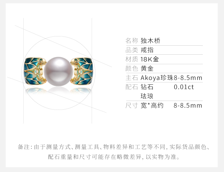 【独木桥】JULEE JULEE茱俪珠宝 18K黄金akoya珍珠钻石戒指