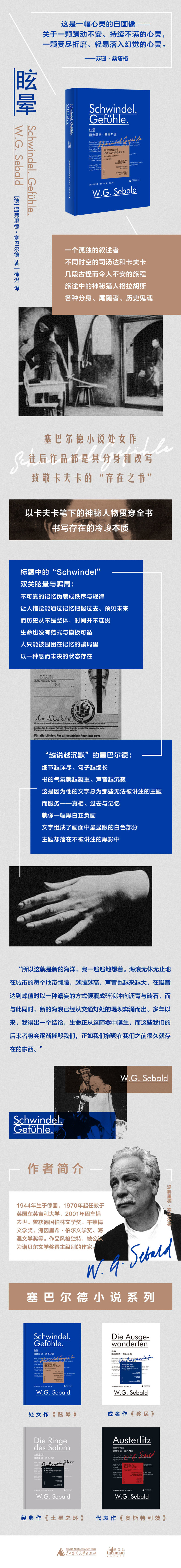 1944年生于德国,1970年起任教于英国东英吉利大学,2001年因车祸去世。作品风格独特,被公认为诺贝尔文学奖得主级别的作家。代表作有《奥斯特利茨》《移民》《土星之环》《眩晕》等。