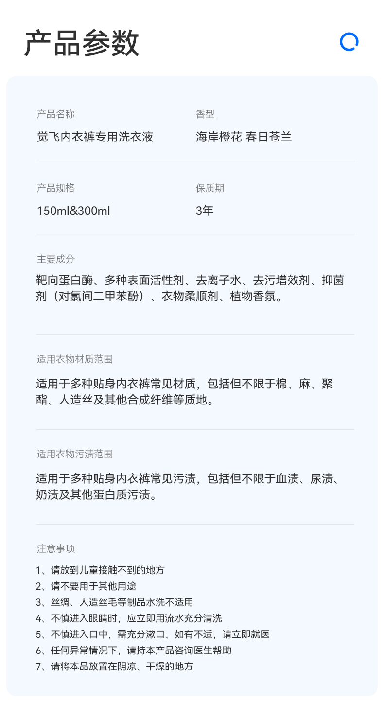 【限时买3送2】JOYFACE/觉飞 150/300ML内衣裤洗衣液去血渍易漂洗