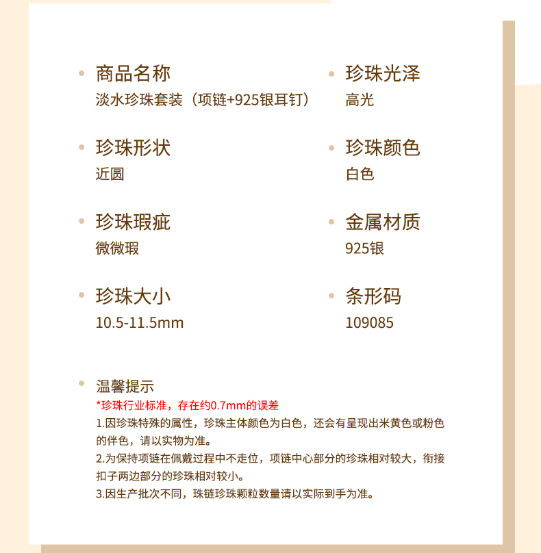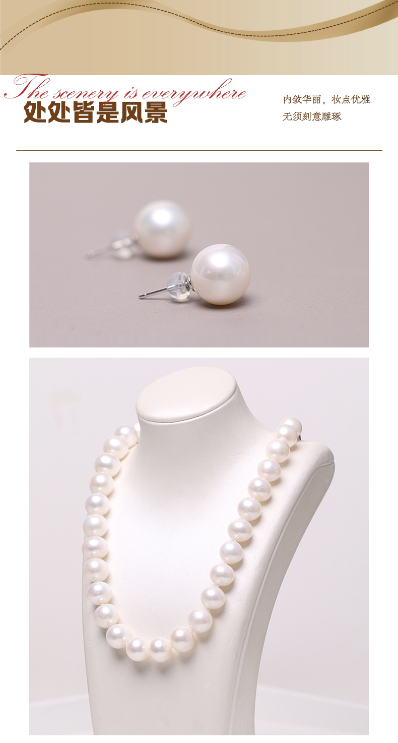 淡水珍珠套装 项链+925银耳钉 10.5-11.5mm 一口价 109085W