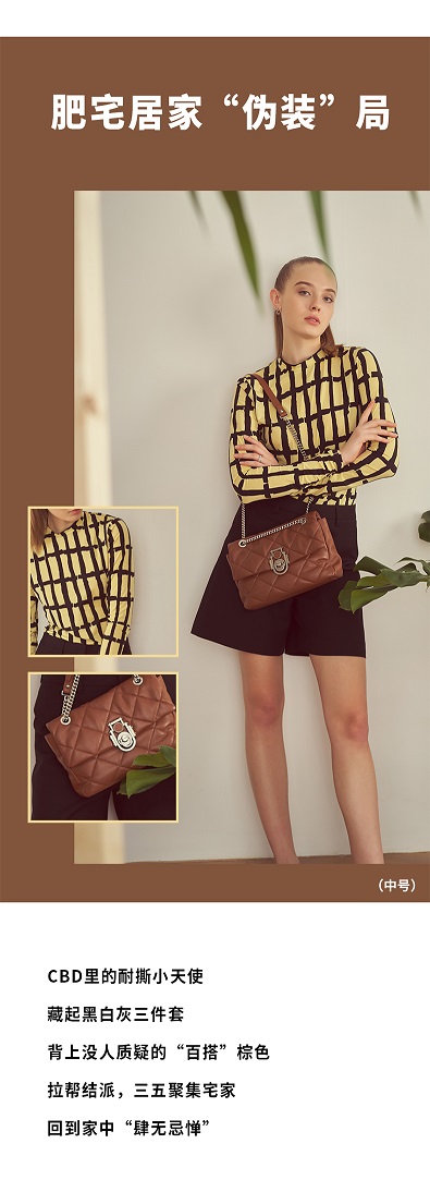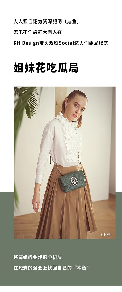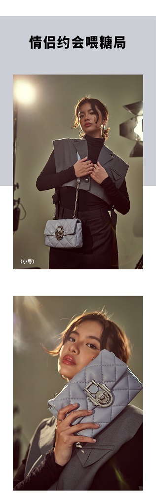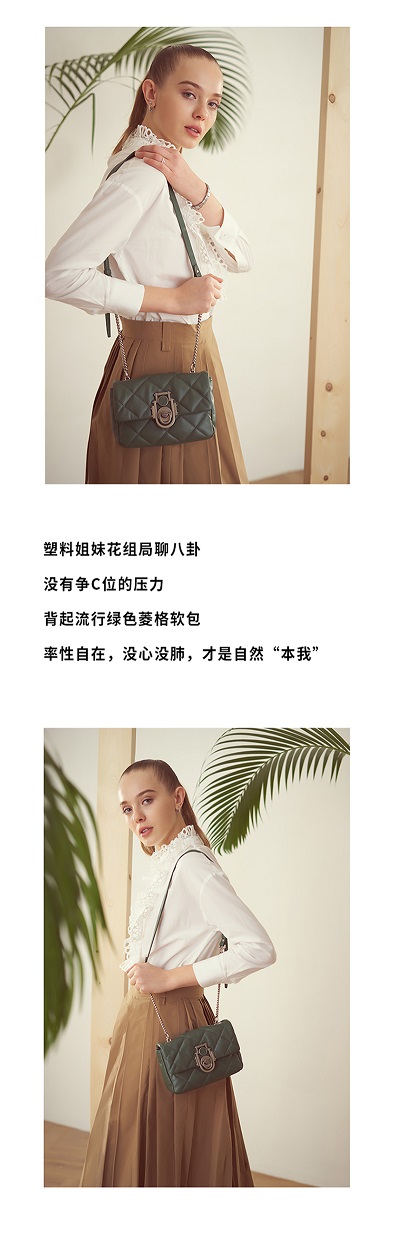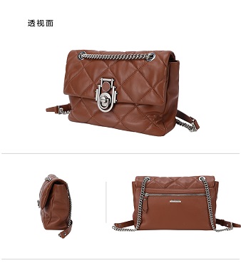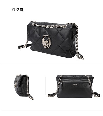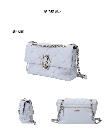 【直发】明治轻奢女包时尚菱格链条腋下包新款包羊皮斜挎单肩包流浪包中号