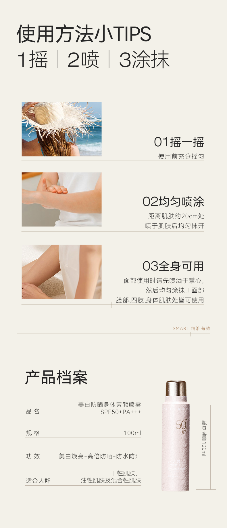 [小滋心选]【活动价¥49/瓶 ¥89/2瓶】爆款热销水之蔻美白防晒喷雾 防水防汗防紫外线全身通用男女士专用