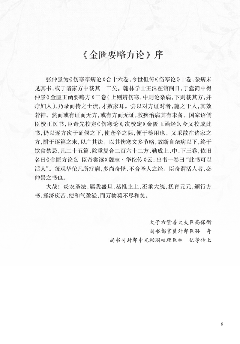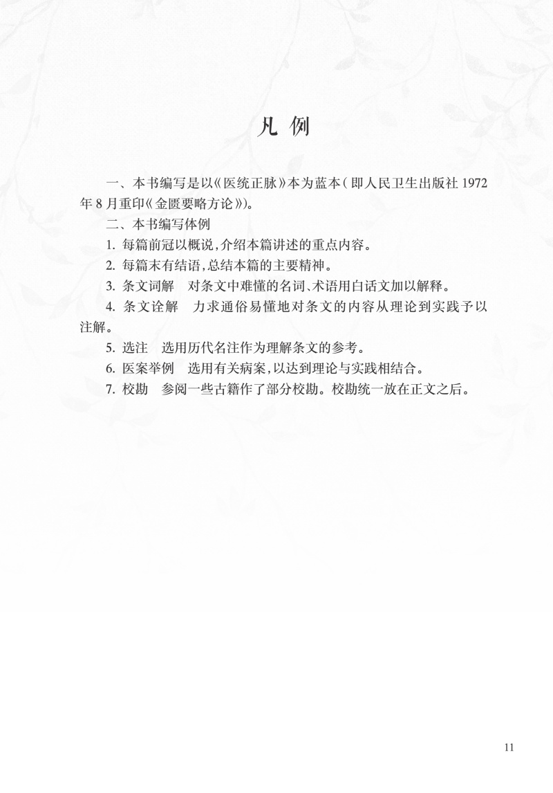 本书取《古今医统正脉全书》本为蓝本,参考明万历赵开美校刊《仲景全书》本及涵芬楼藏明刊本校对。全书共25篇,前22篇共有条文396条,除系统地进行了诠解外,并附有相应的选注和医案;最后3篇论述了《杂疗方》和《禽兽鱼虫禁忌并治》《果实菜谷禁忌并治》。本书在保持作者的学术观点及临床体会的同时,精选历代注家观点,着重于理法药的分析、病机的探讨、病证的鉴别比较等。对于一些前人存有疑问的条文、附方,我们通过学习、考证,作了一些必要的解释和校勘,以供读者参考。