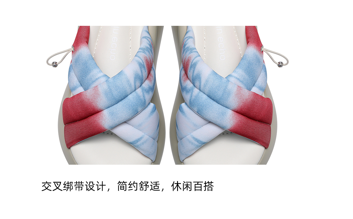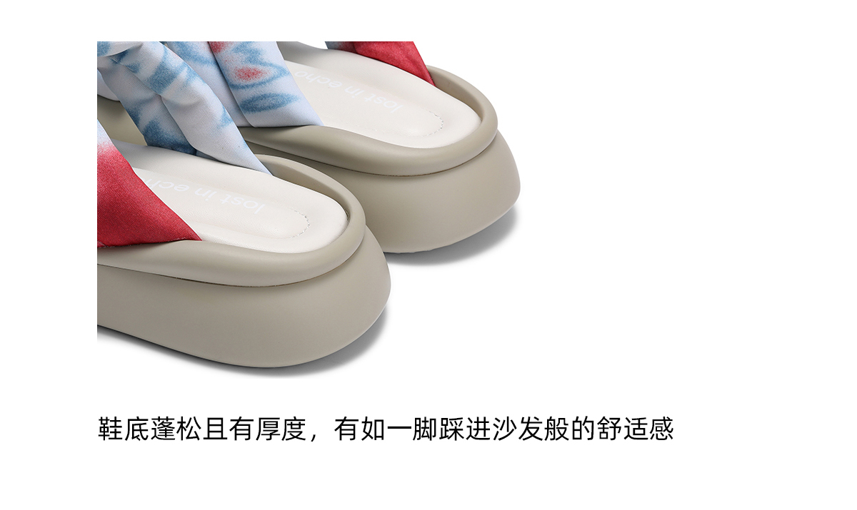 [断码]lost in echo设计师品牌休闲百搭交叉带印花厚底拖鞋