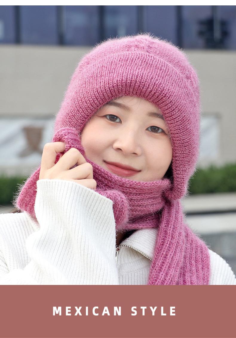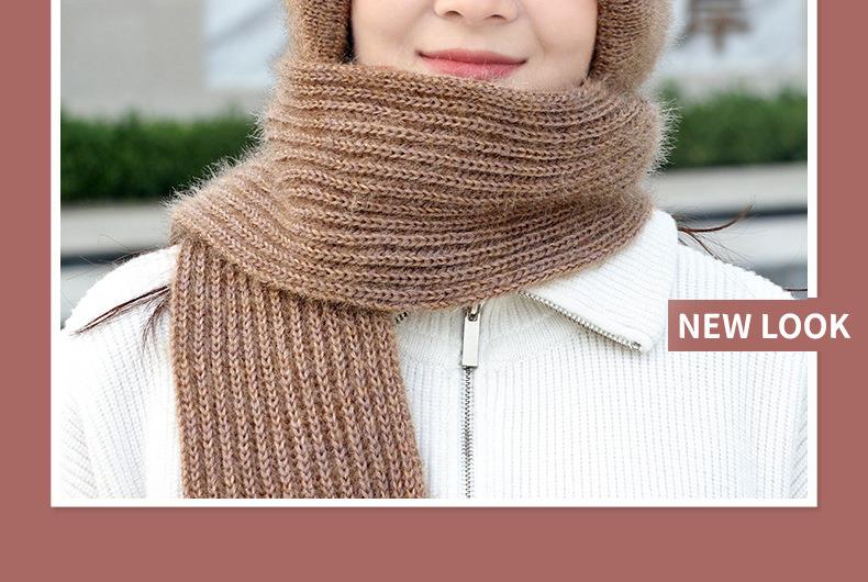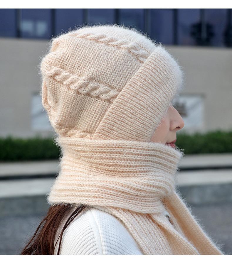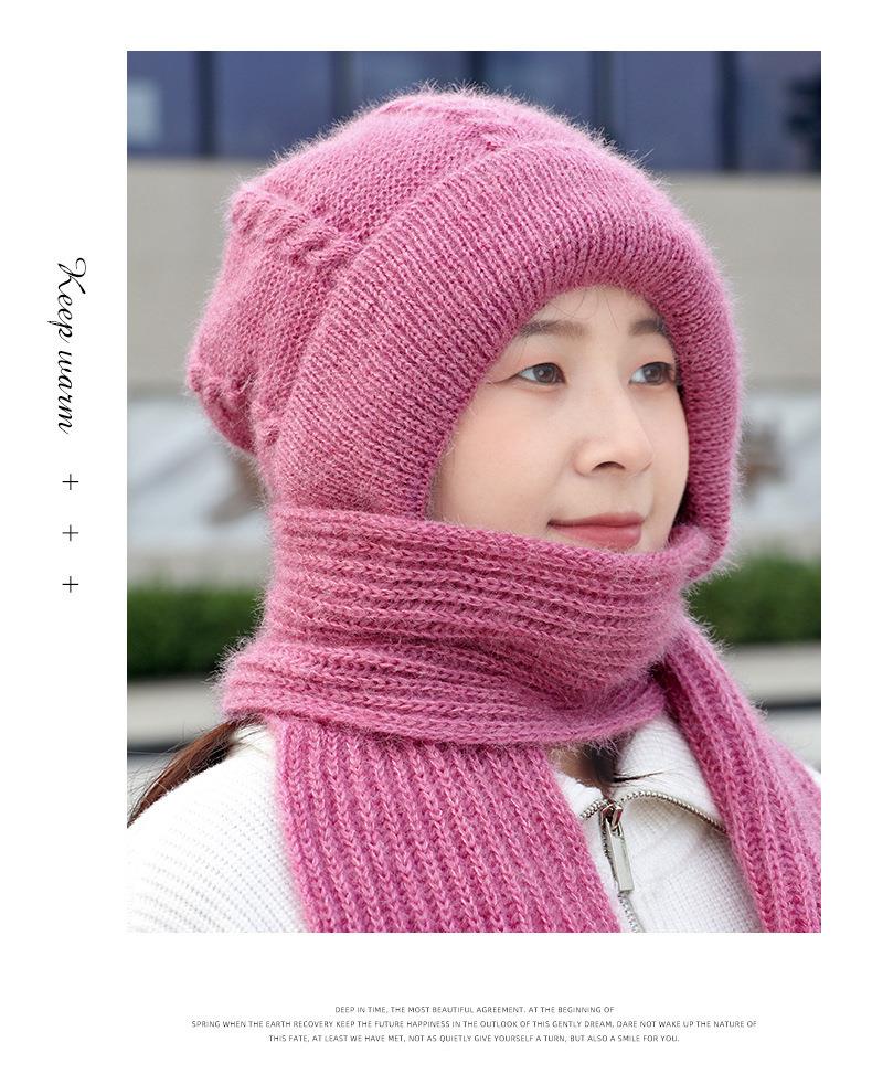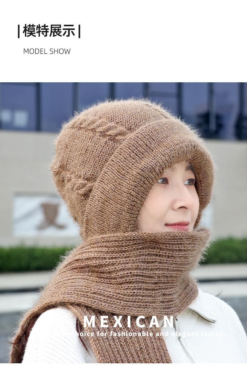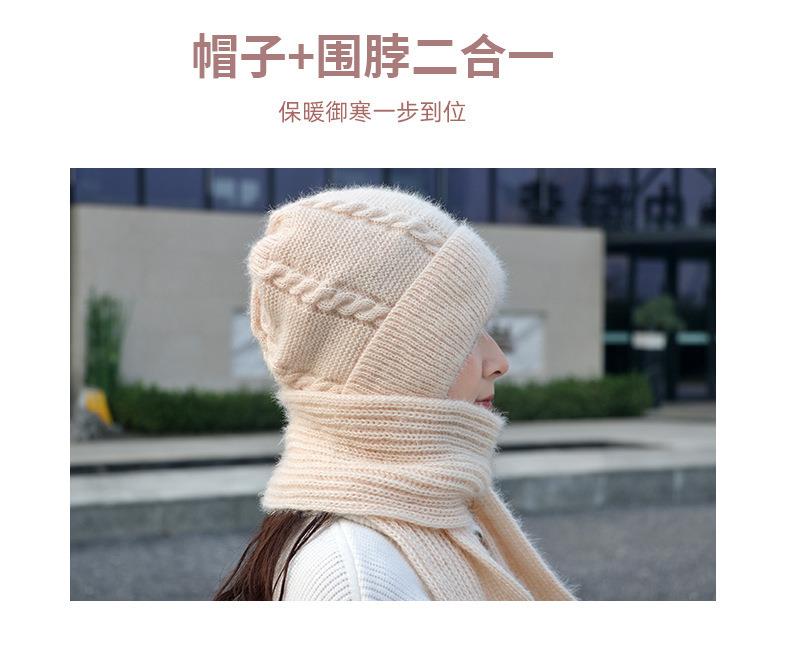 秋冬新款帽子女加绒加厚防寒围巾一体帽麻花保暖帽包头针织毛线帽