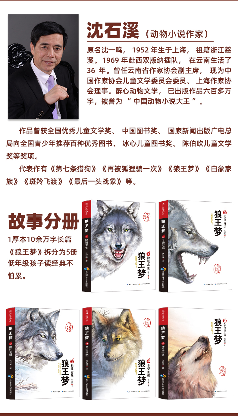正版动物小说大王沈石溪 狼王梦画本全套5册 沈石溪珍藏版完整版漫画版小学生三四五六年级课外书8-12岁班主任推荐经典儿童文学书