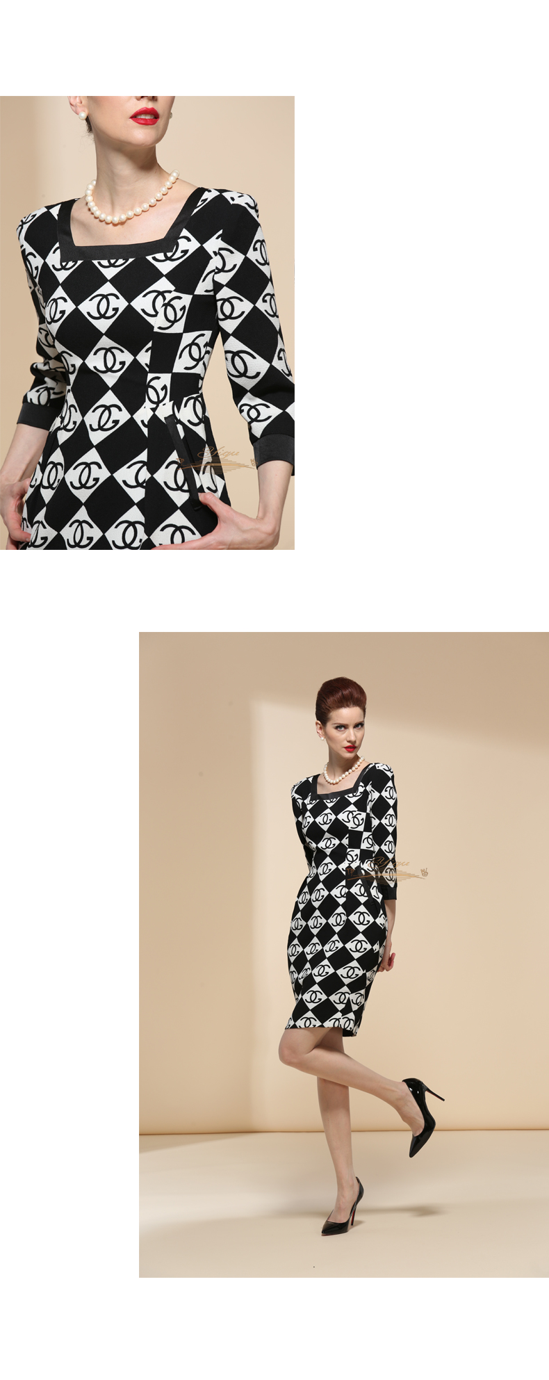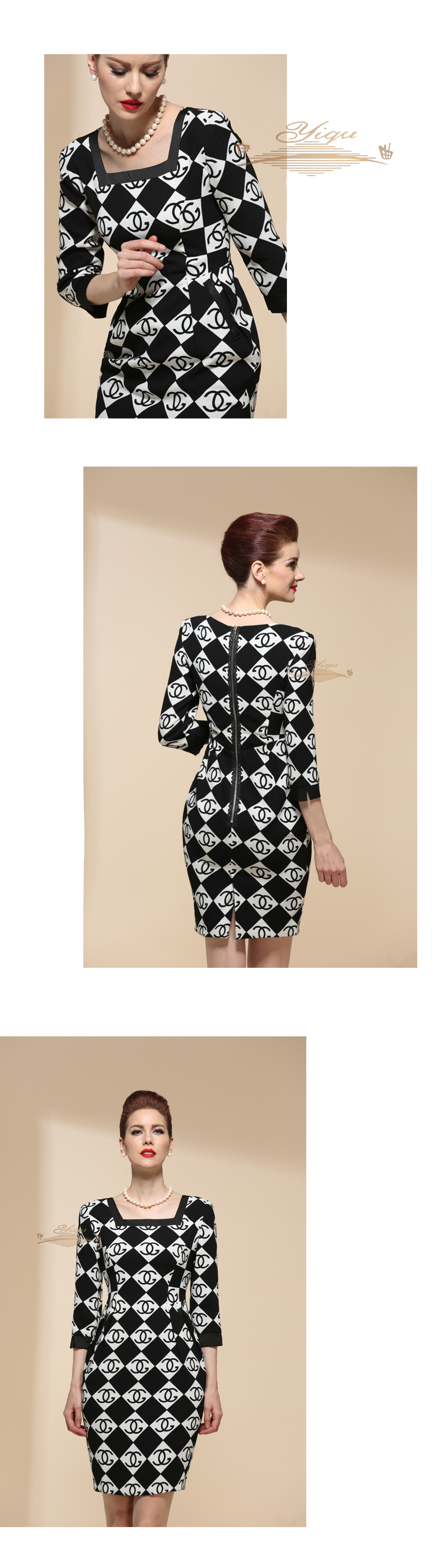 【特惠】YIQU |“心曲”连身裙(黑与白)(面料有瑕疵,介意勿选)P