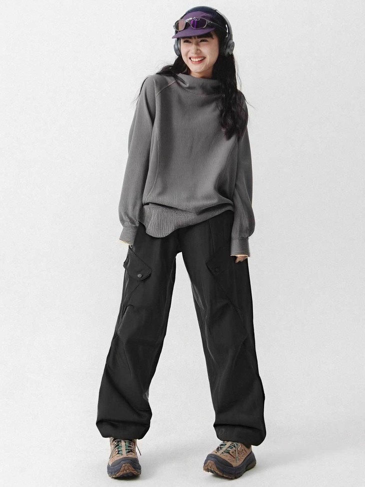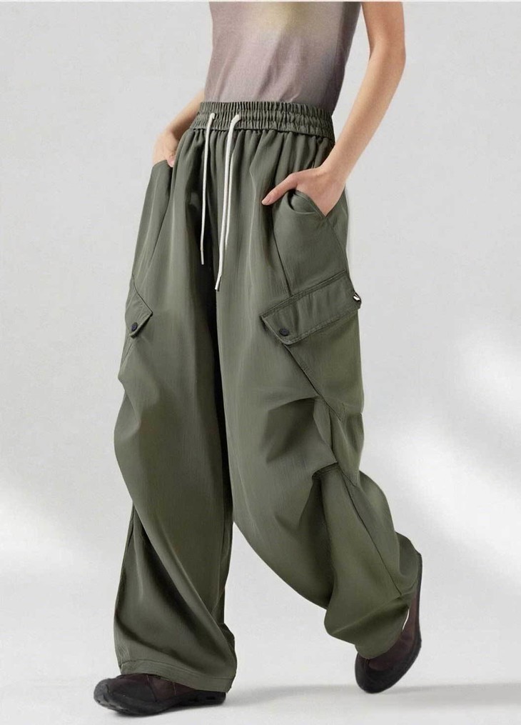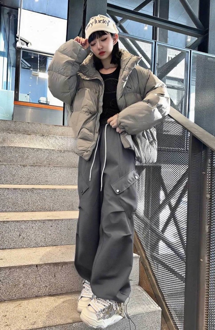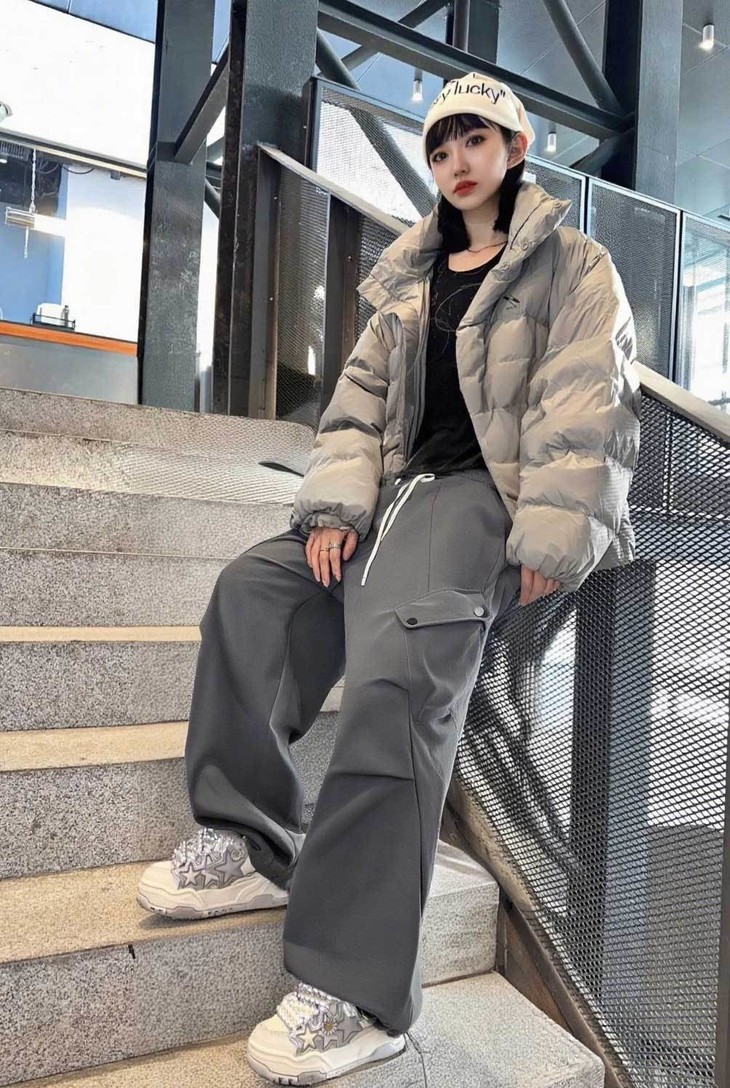 1️⃣关于版型 是简单的直筒宽松版型+简约松紧小高腰版型 当下最火的工装裤 不挑人!胖瘦都可以穿!上身效果贼好! 特别是对于有的胯宽腿粗的姐妹 真的可以买一条回家试试,是真的遮肉显瘦显高! 重点是穿着也很舒适,一天