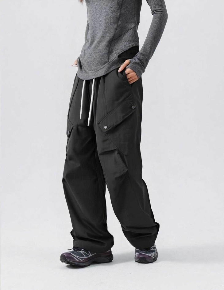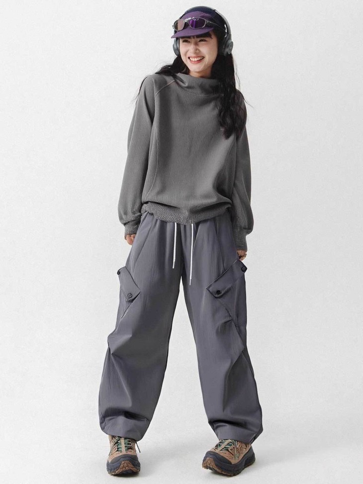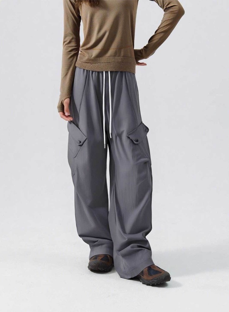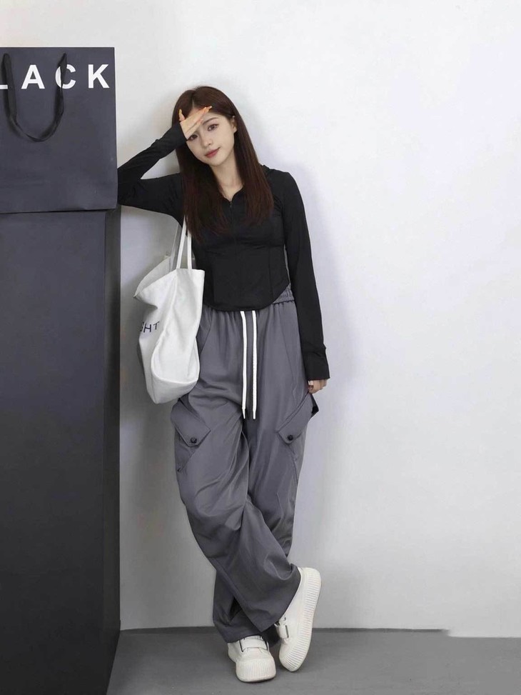 当然除了显瘦遮肉,更讨喜的它裤腿的抽绳两穿式设计。 一拉一抽变换长短,还能在阔腿or束脚之间随意切换 ,真的不要太实用,太百搭!