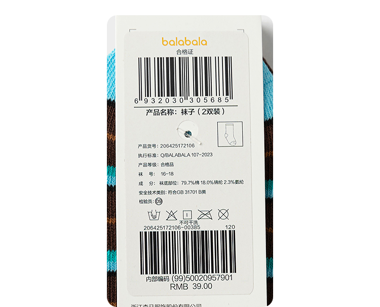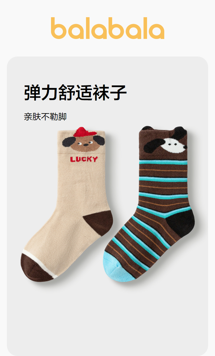 巴拉巴拉宝宝袜子冬季萌趣袜婴幼儿中筒袜提花两双装