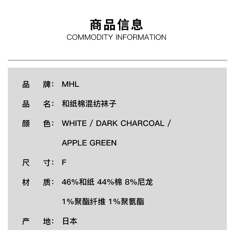 MHL SOCK WA-SHI COTTON SOCK 女式和纸棉混纺袜子 中筒袜