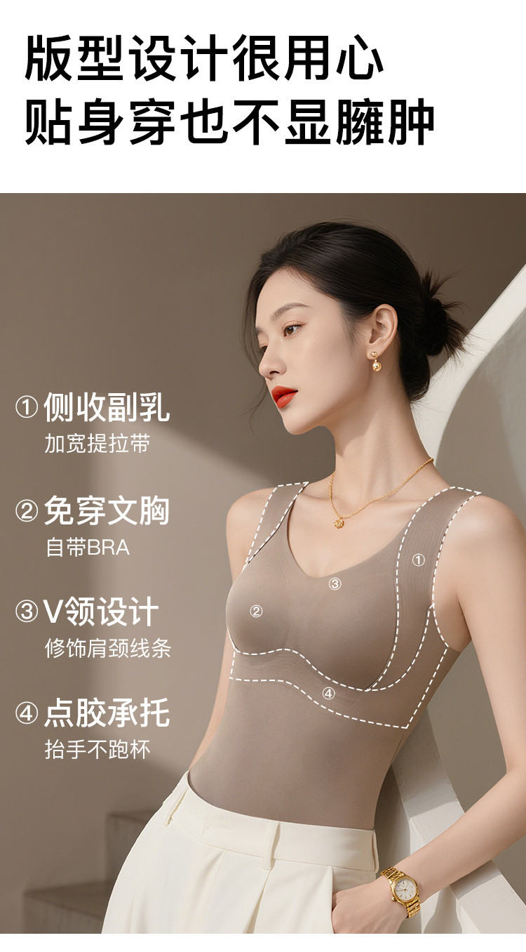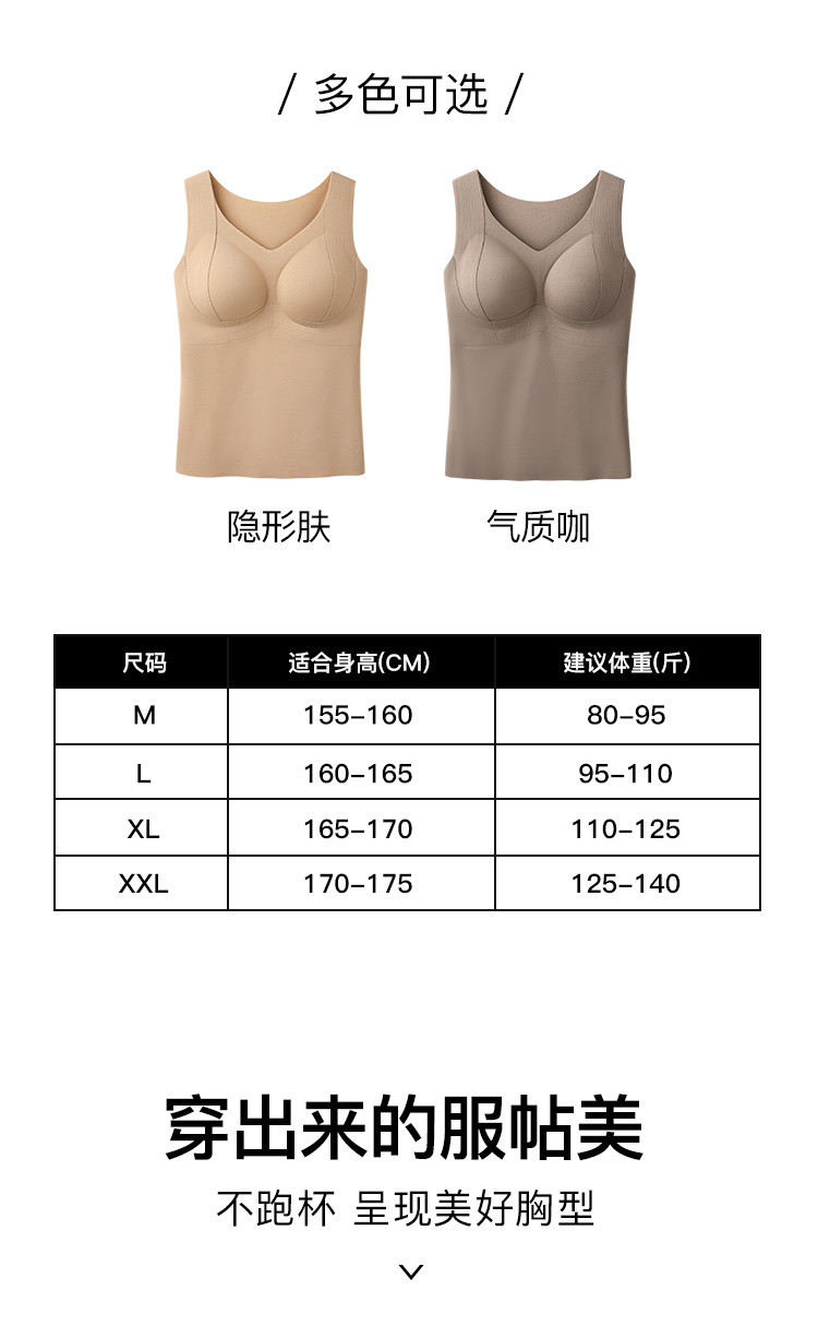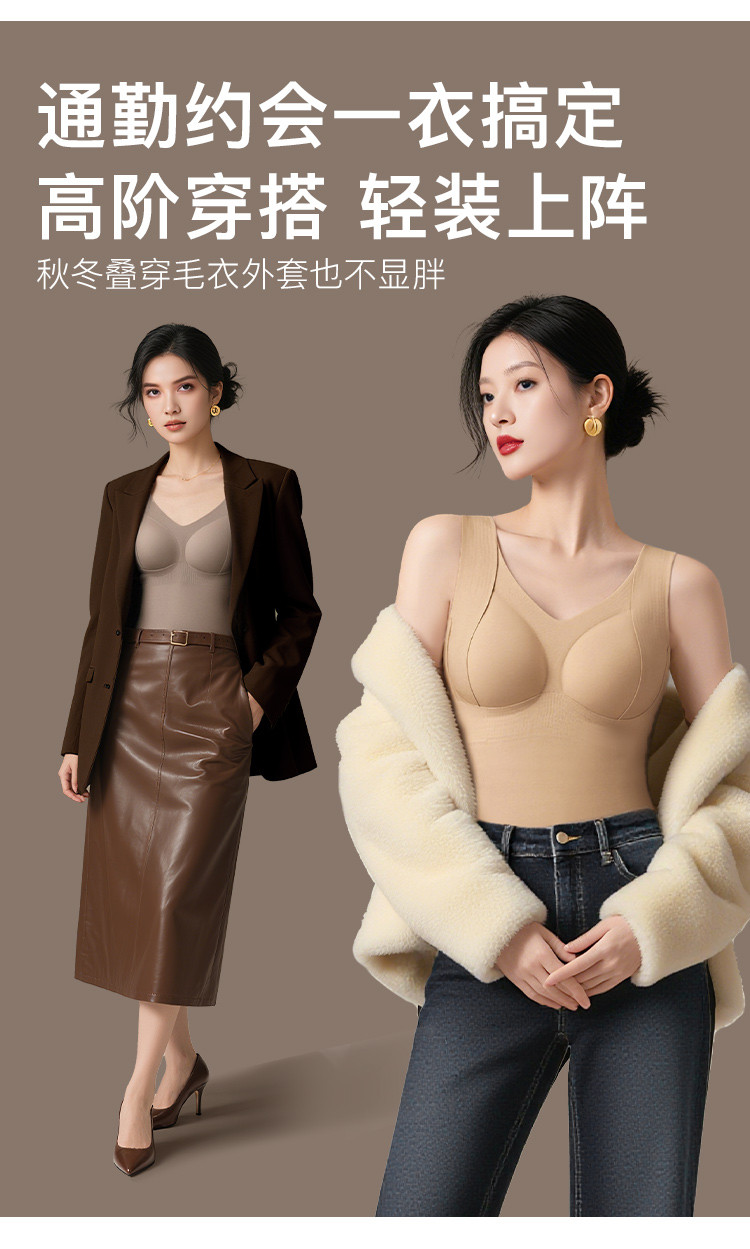 星梦摇曳 打底背心(VIP)【提拉塑型 免穿文胸】带胸垫无痕磨毛蓄热轻塑女士打底保暖背心