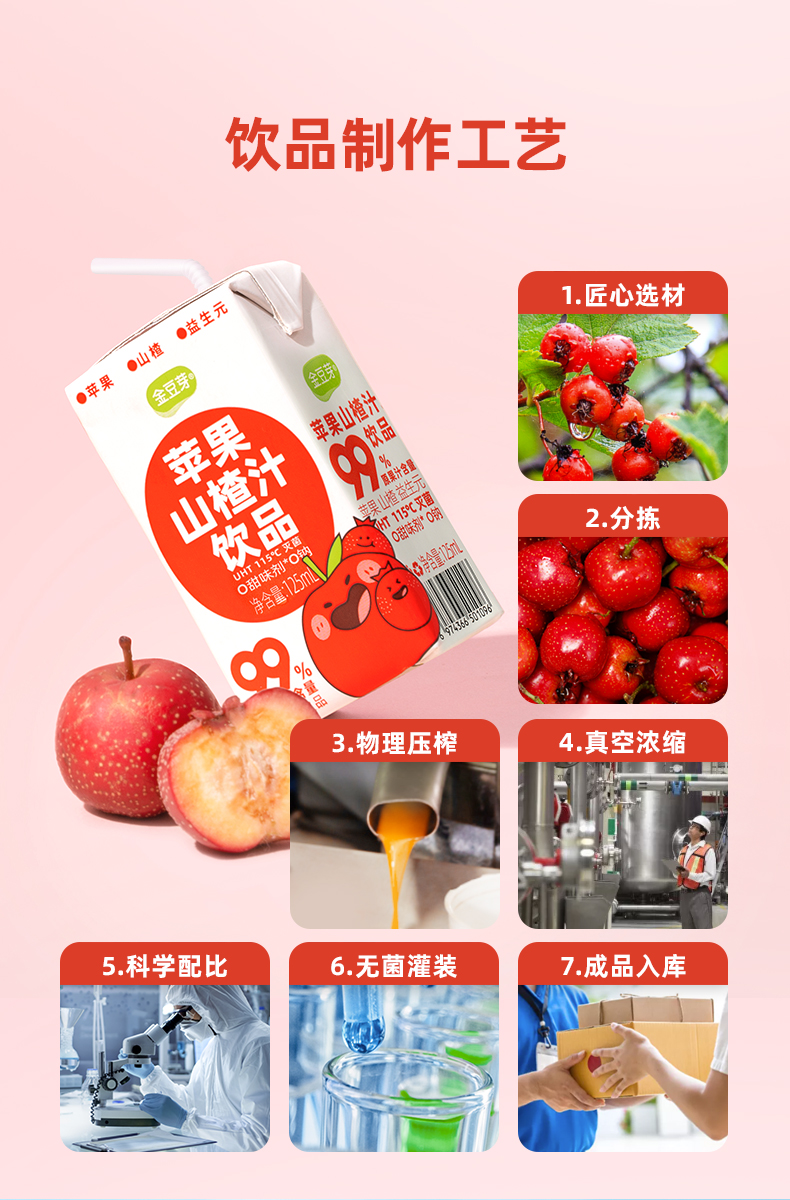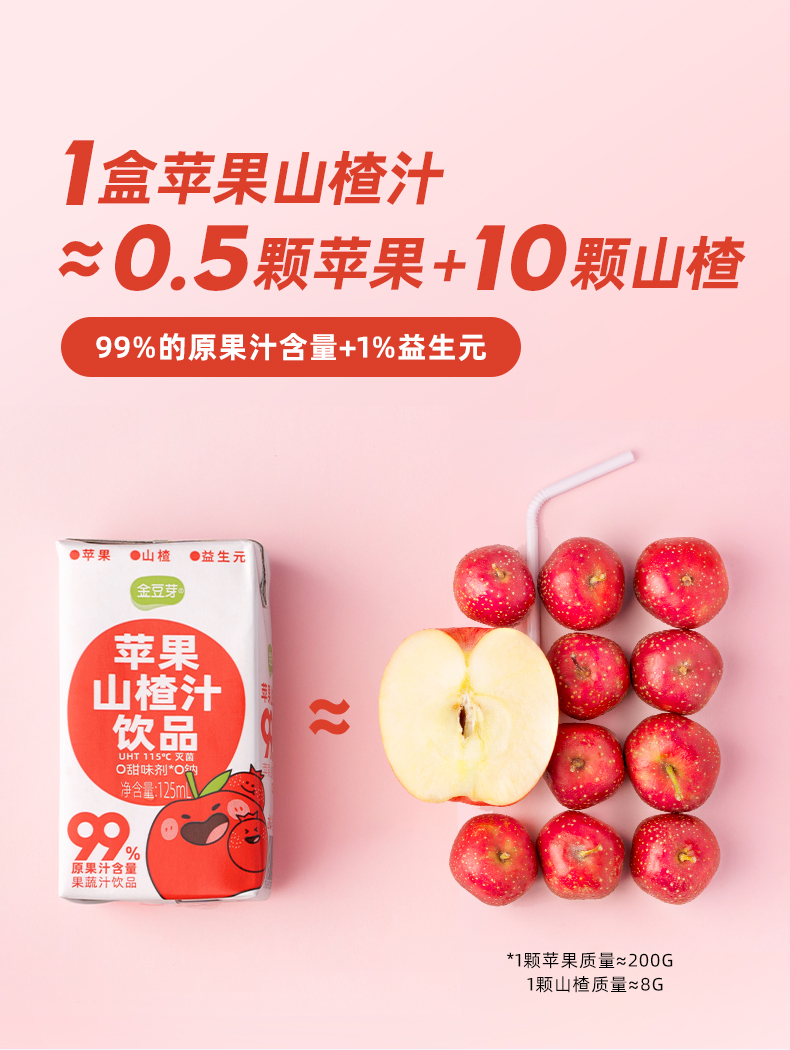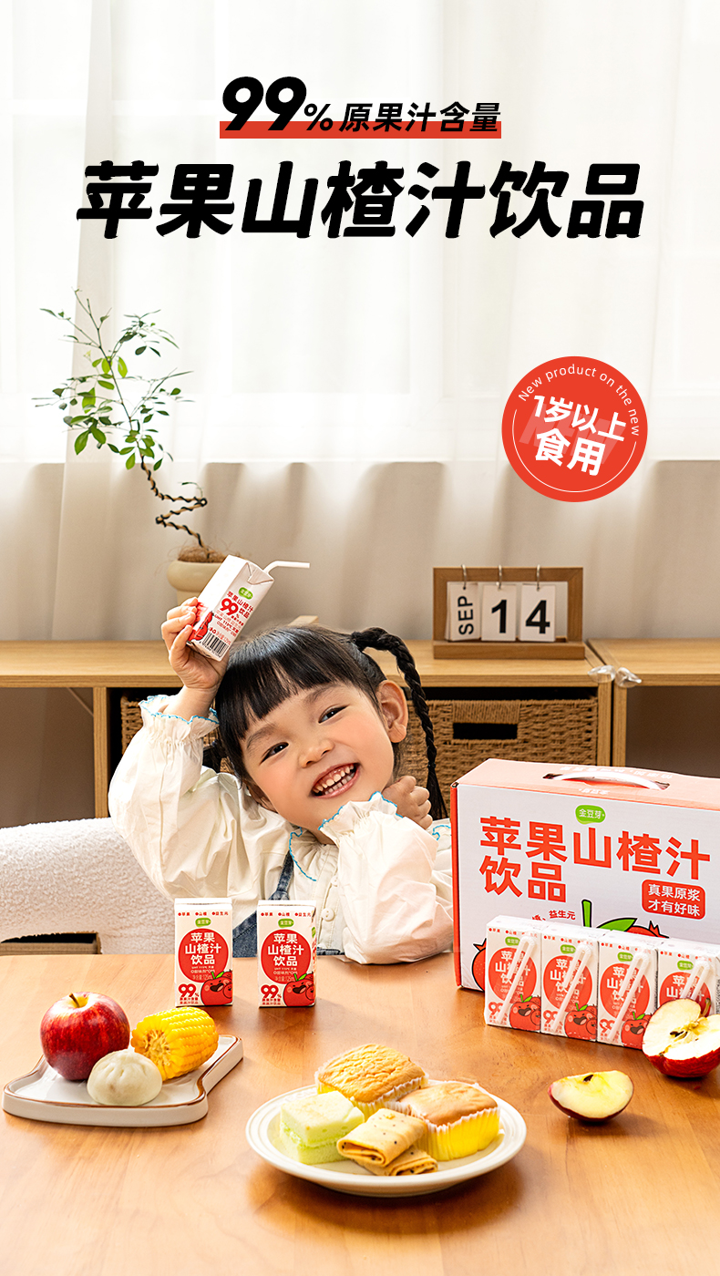 【55.9抢一件!益生元苹果山楂汁】甄选优质原料制作,99%原果子含量+1%益生元,宝宝爱喝有营养,纯净配方超满足,7层复合无菌包装守护美味L