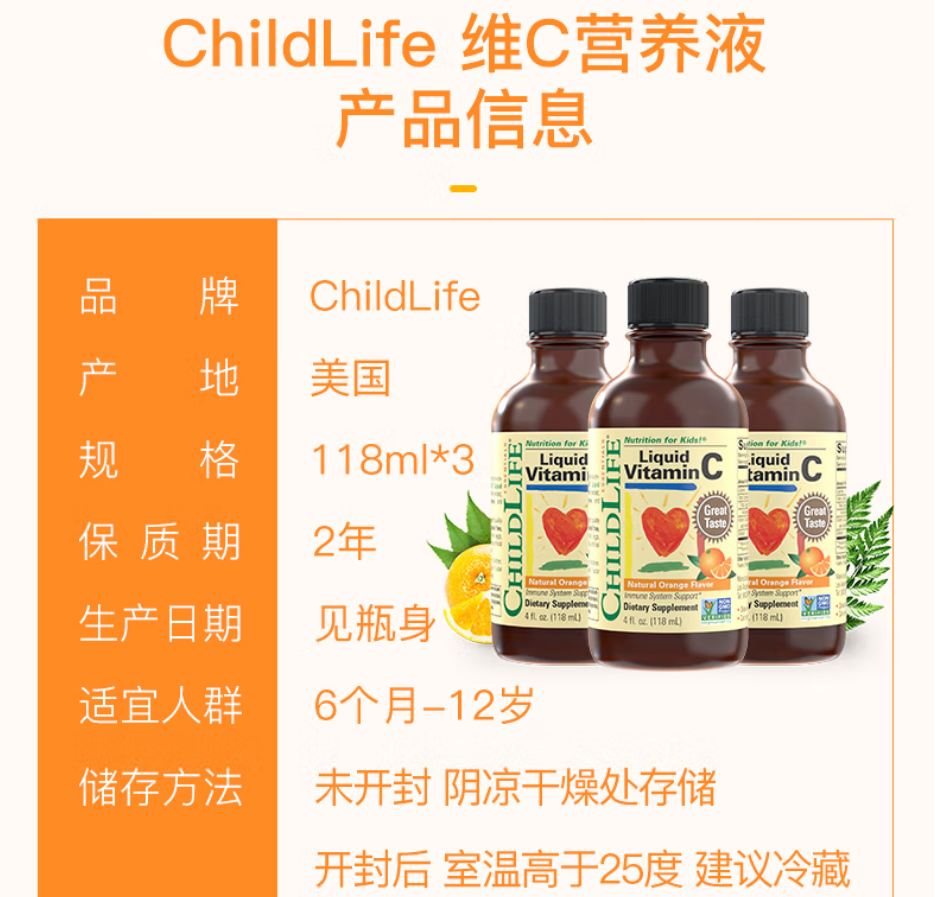 ChildLife维c活力营养液 118ml【临期特惠 售出不退不换】