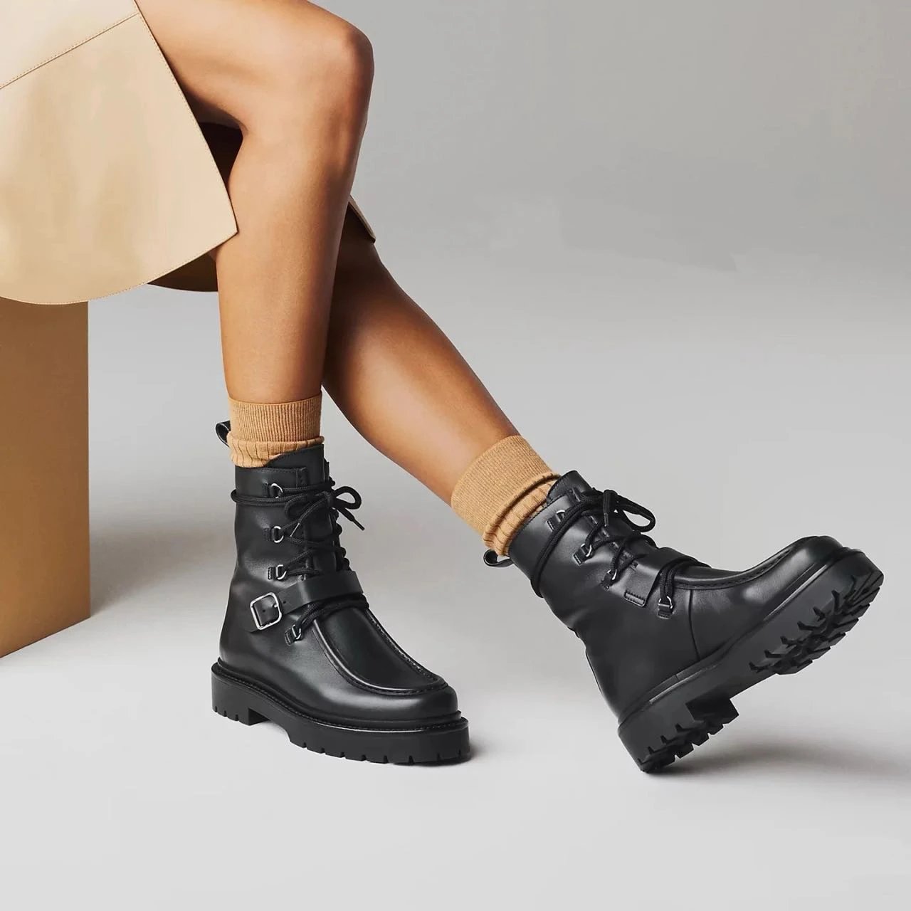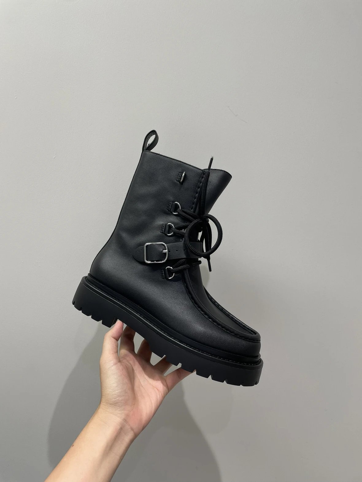重磅渠道 大马Land搭扣系带及踝靴 金属搭扣中筒马丁靴 经典厚底短靴