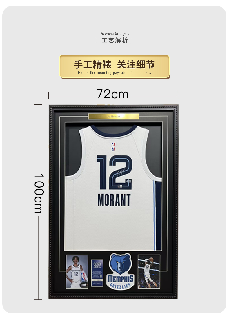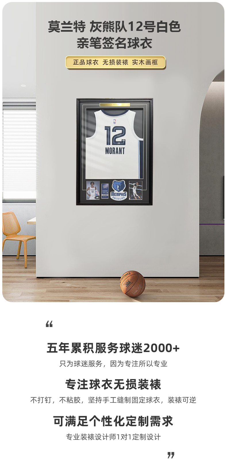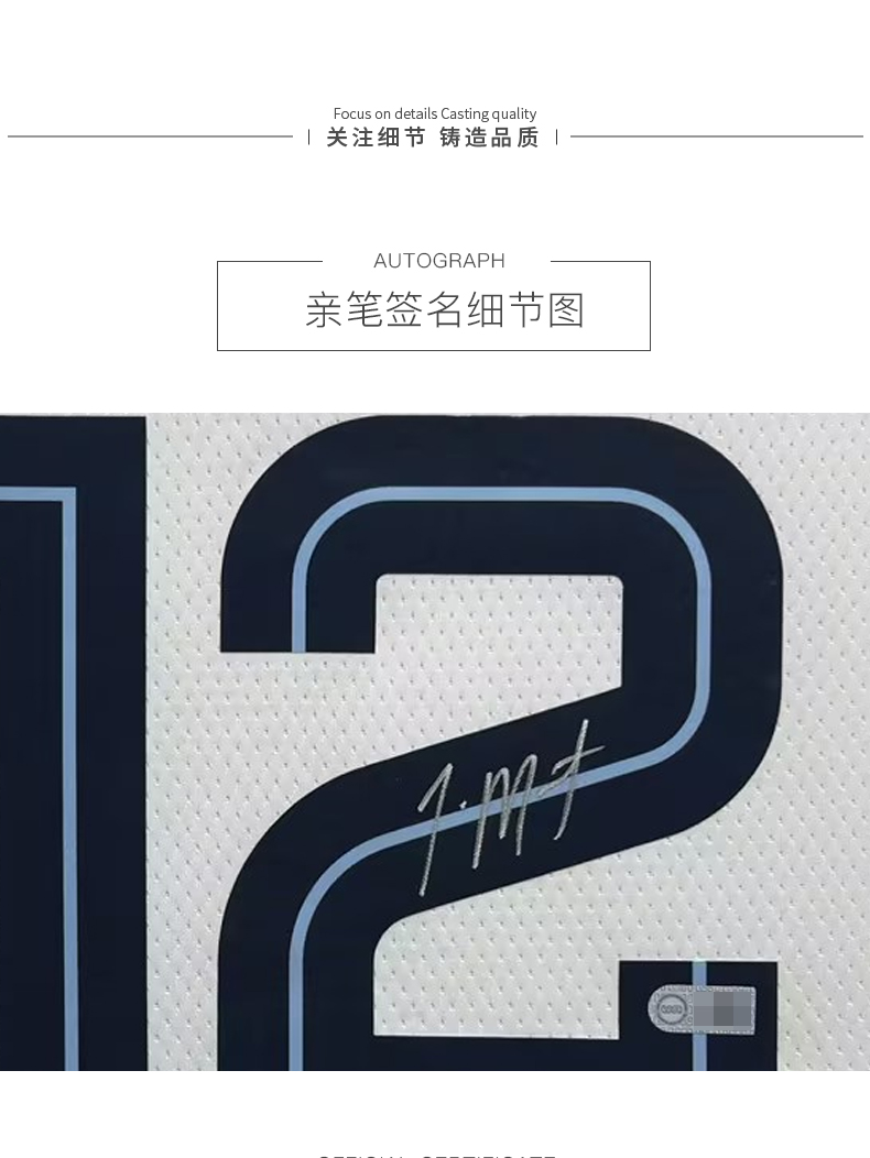 收藏系列 莫兰特 灰熊队12号白色 亲笔签名球衣