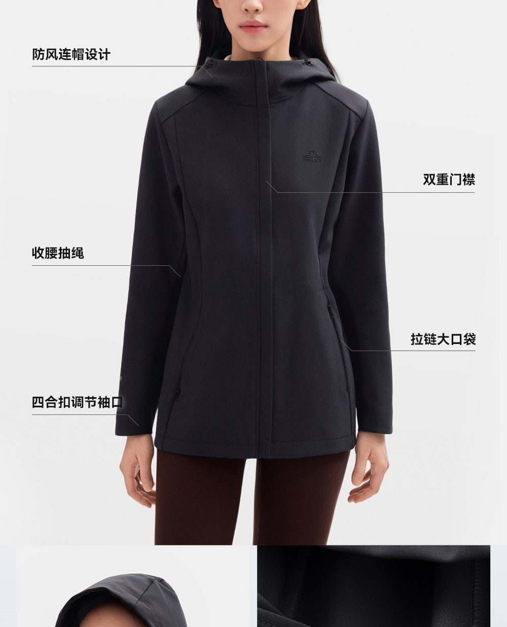 伯希和户外软壳衣女25秋冬新款防风收腰外套保暖修身夹克运动上衣