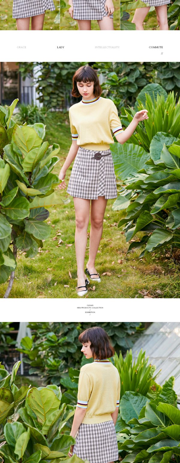 欧芮儿新款短袖针织衫女 半高领撞色宽松显瘦套头上衣