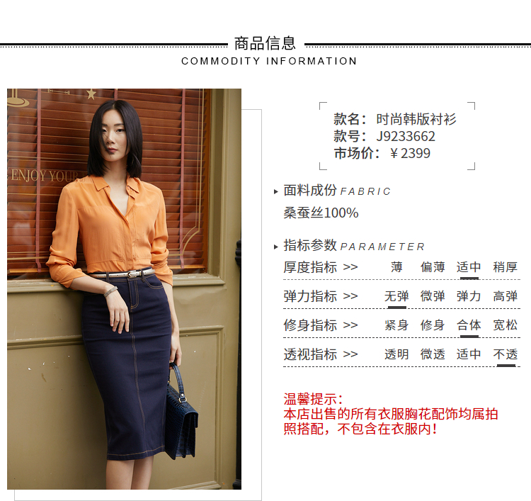 “秋日橙”J9233662A重磅真丝衬衫 高级的光泽感和丝滑的质感(四季可穿)颈袖添香