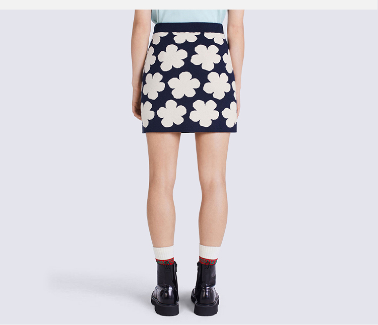 KENZO 高田贤三 女士羊毛 HANA DOTS' 提花迷你针织短裙 蓝色 FC62 JU326 3CO 77