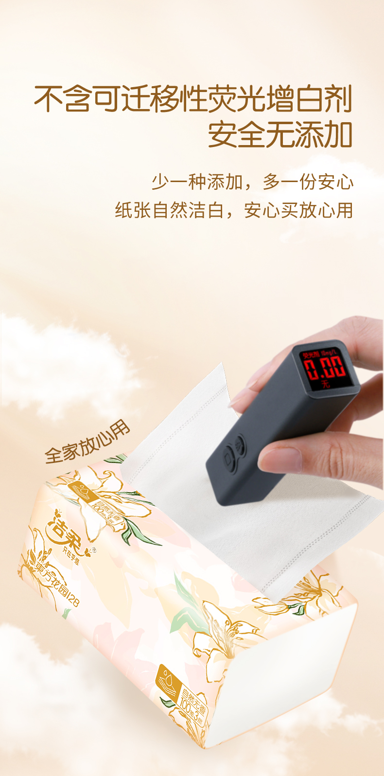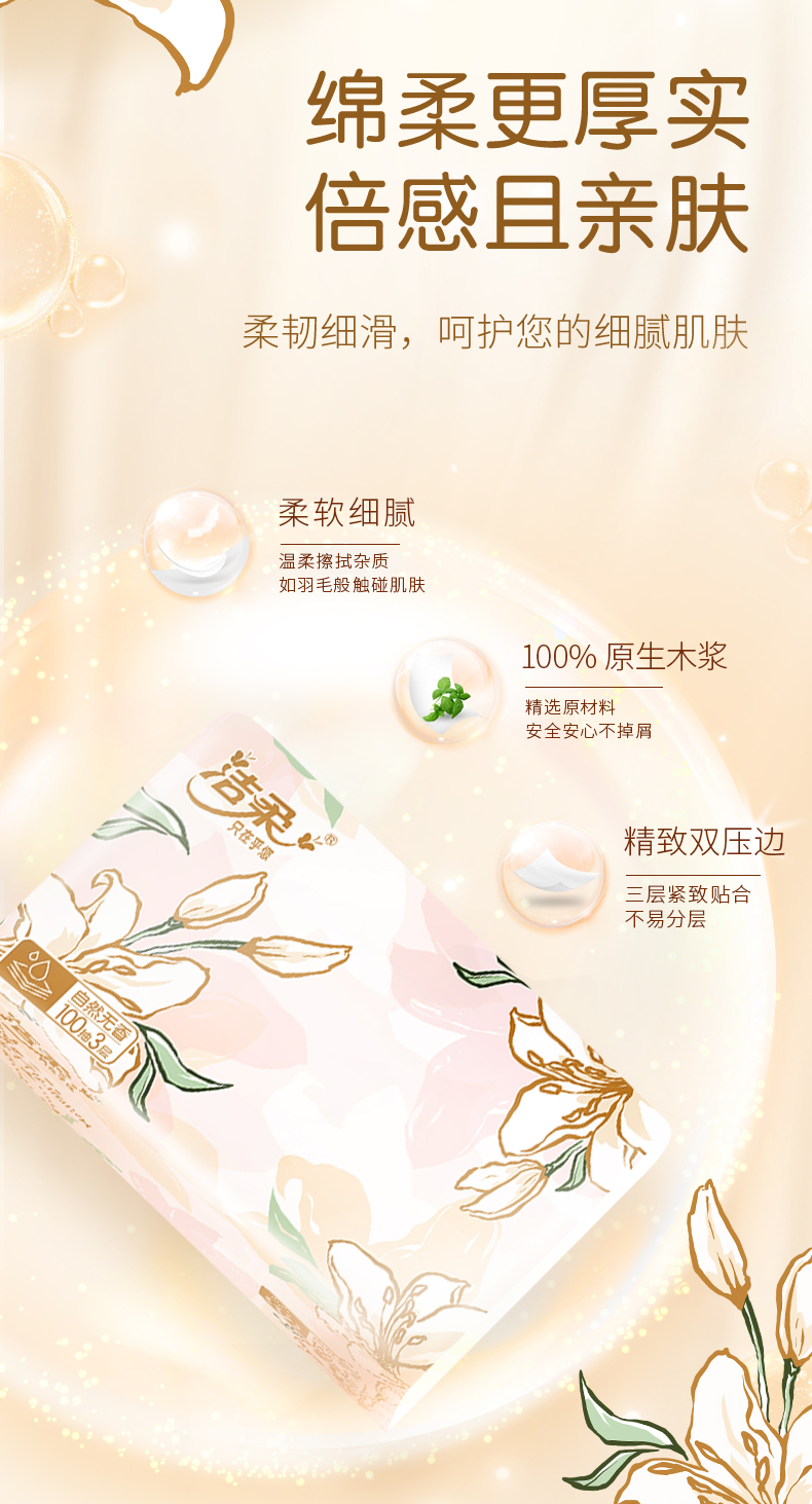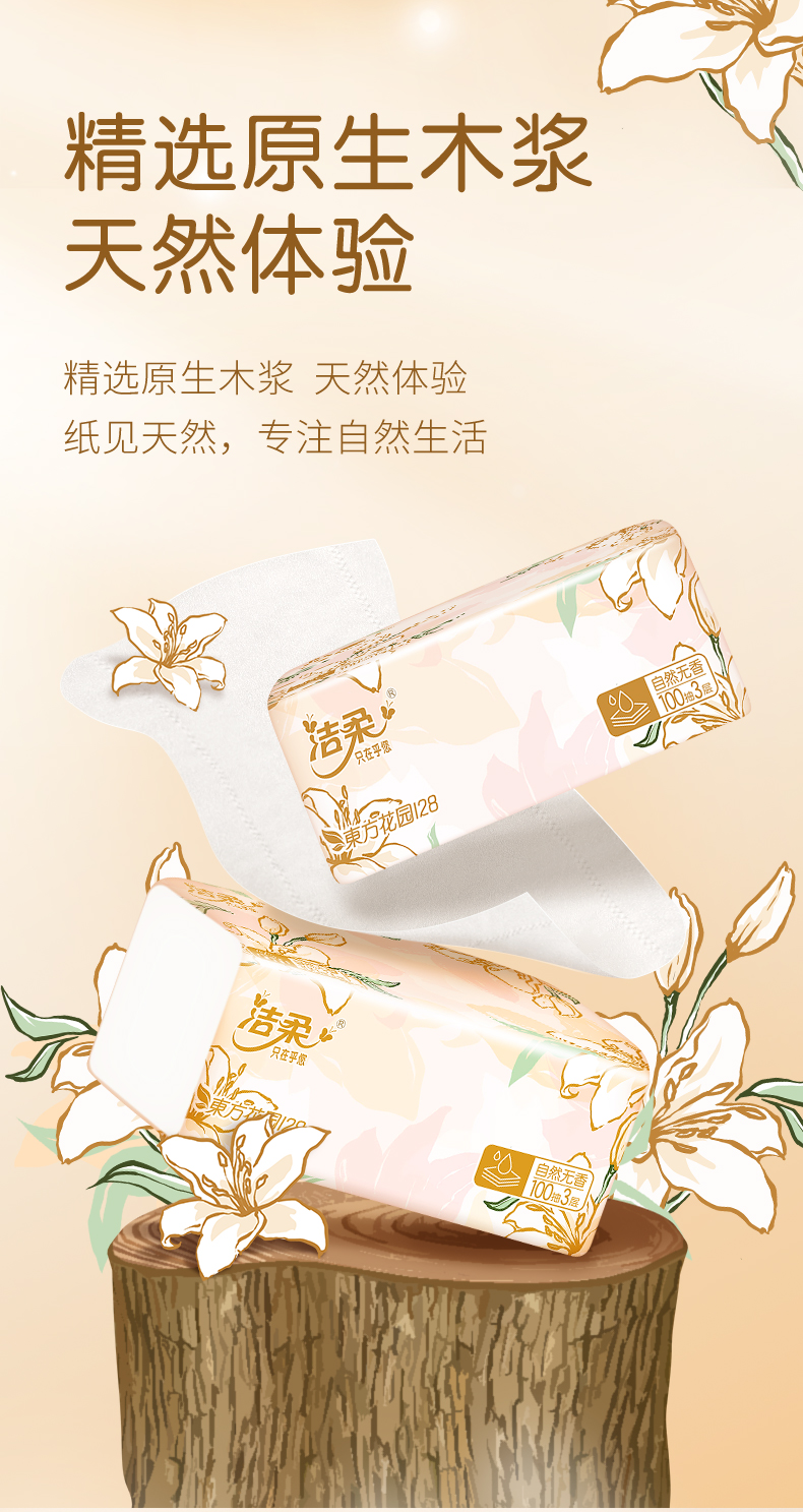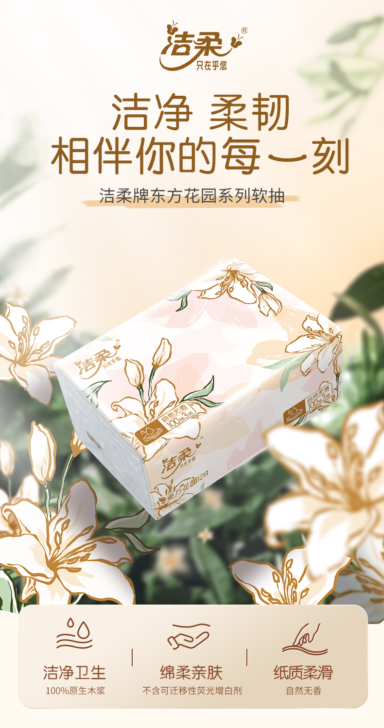 洁柔牌纸面巾(东方花园128软抽)100抽3层(20包装) TR371-20E