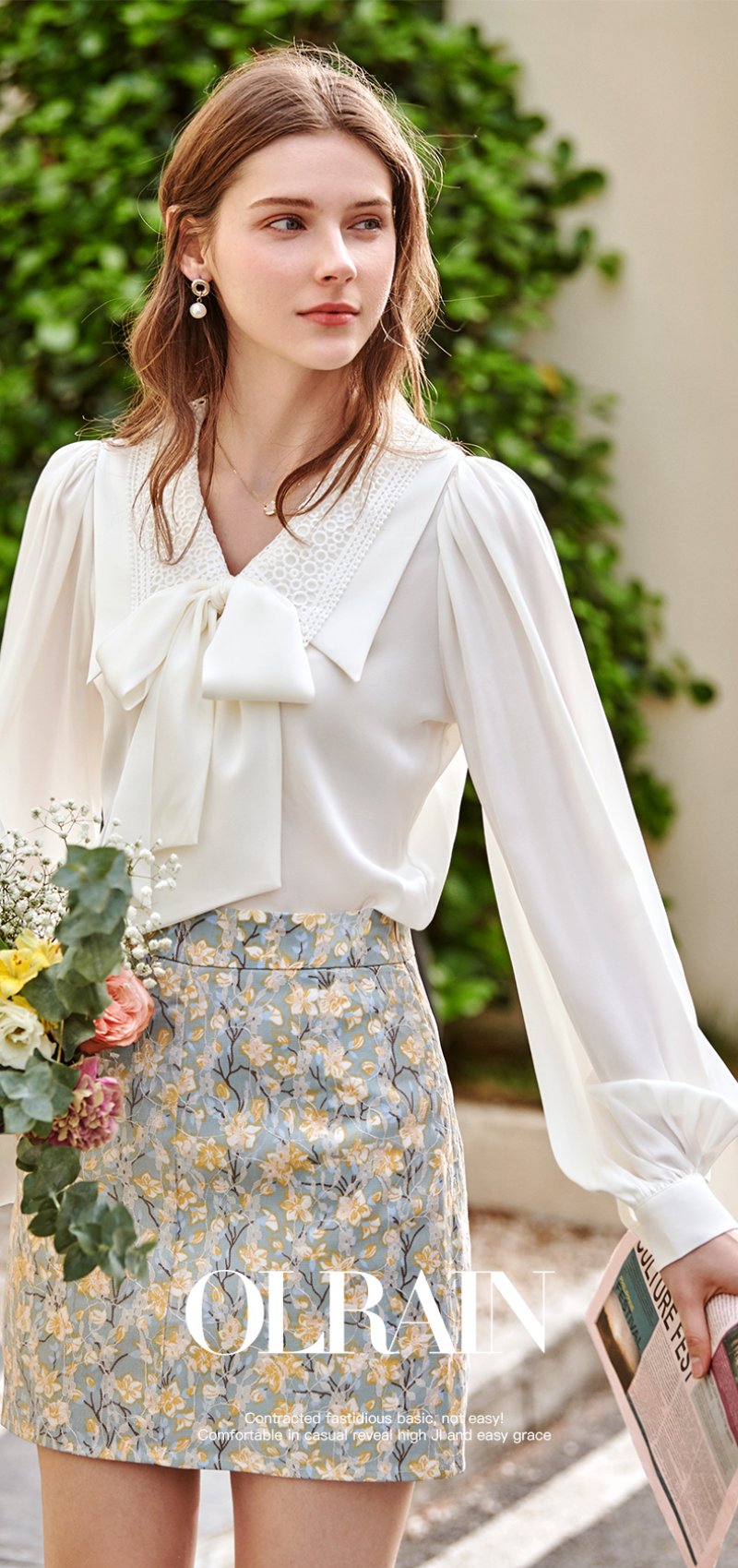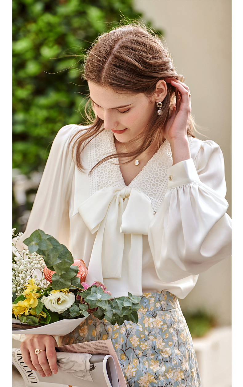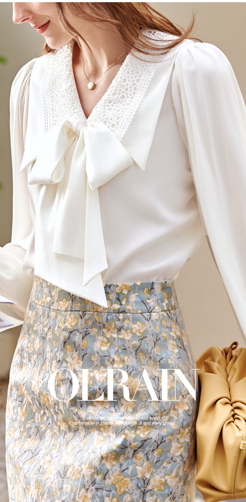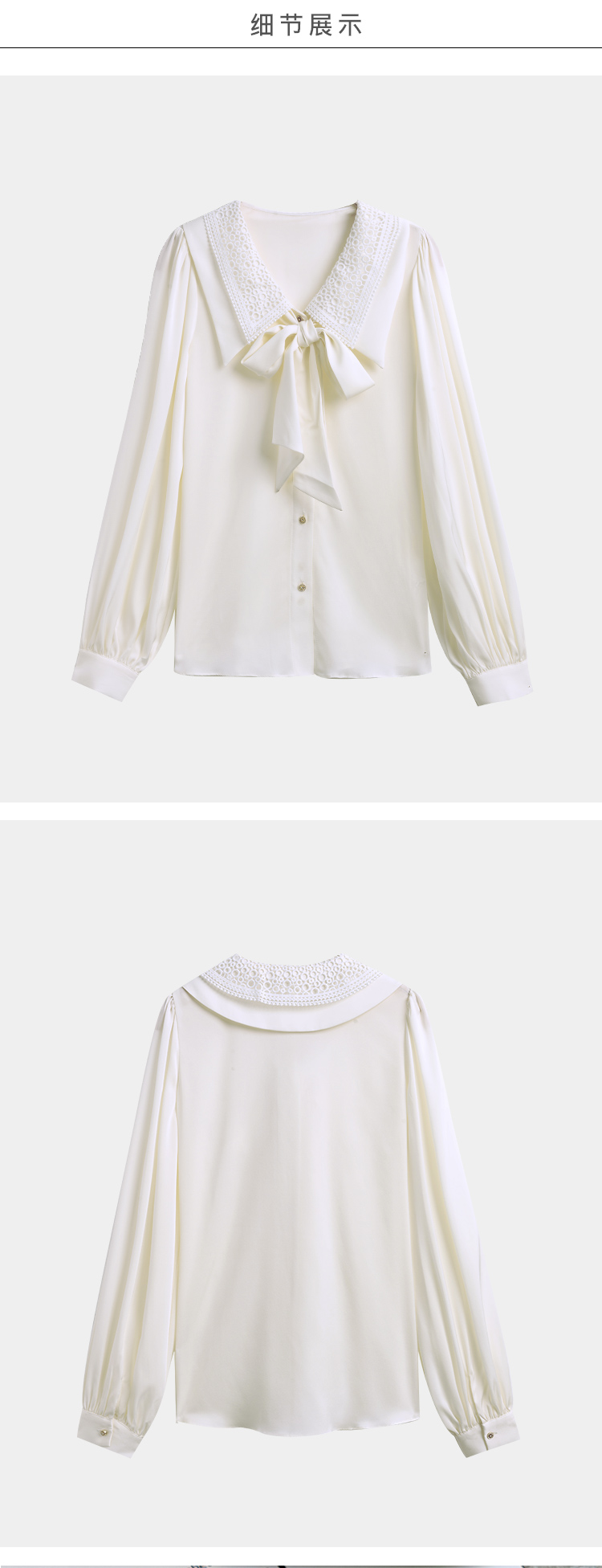 欧芮儿长袖缎面衬衫女春季新款复古优雅时髦气质翻领设计感衬衣