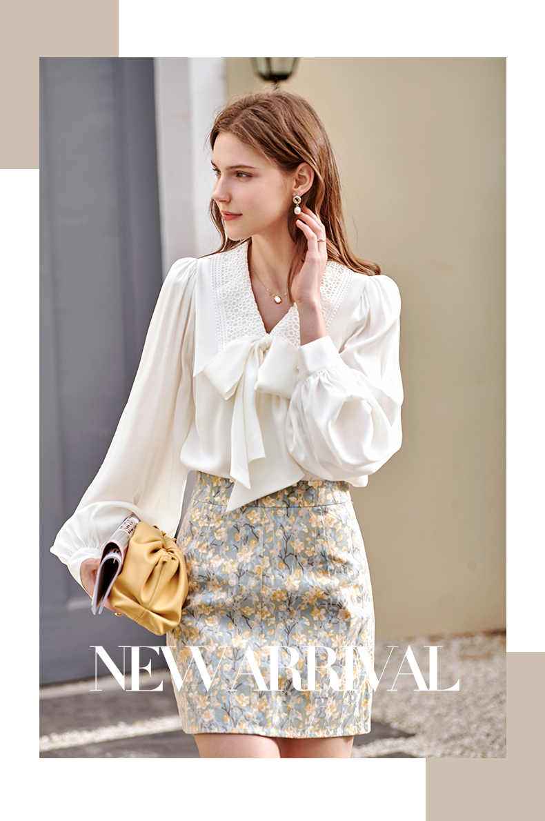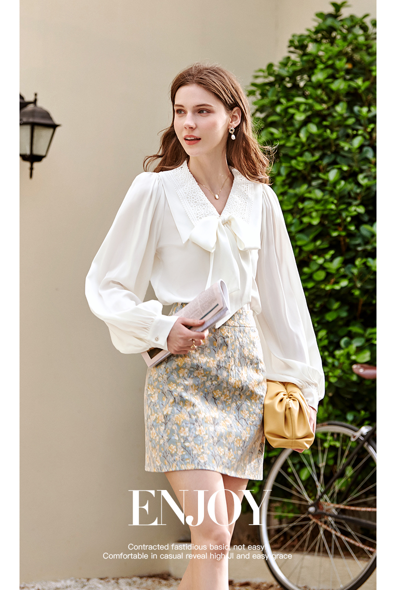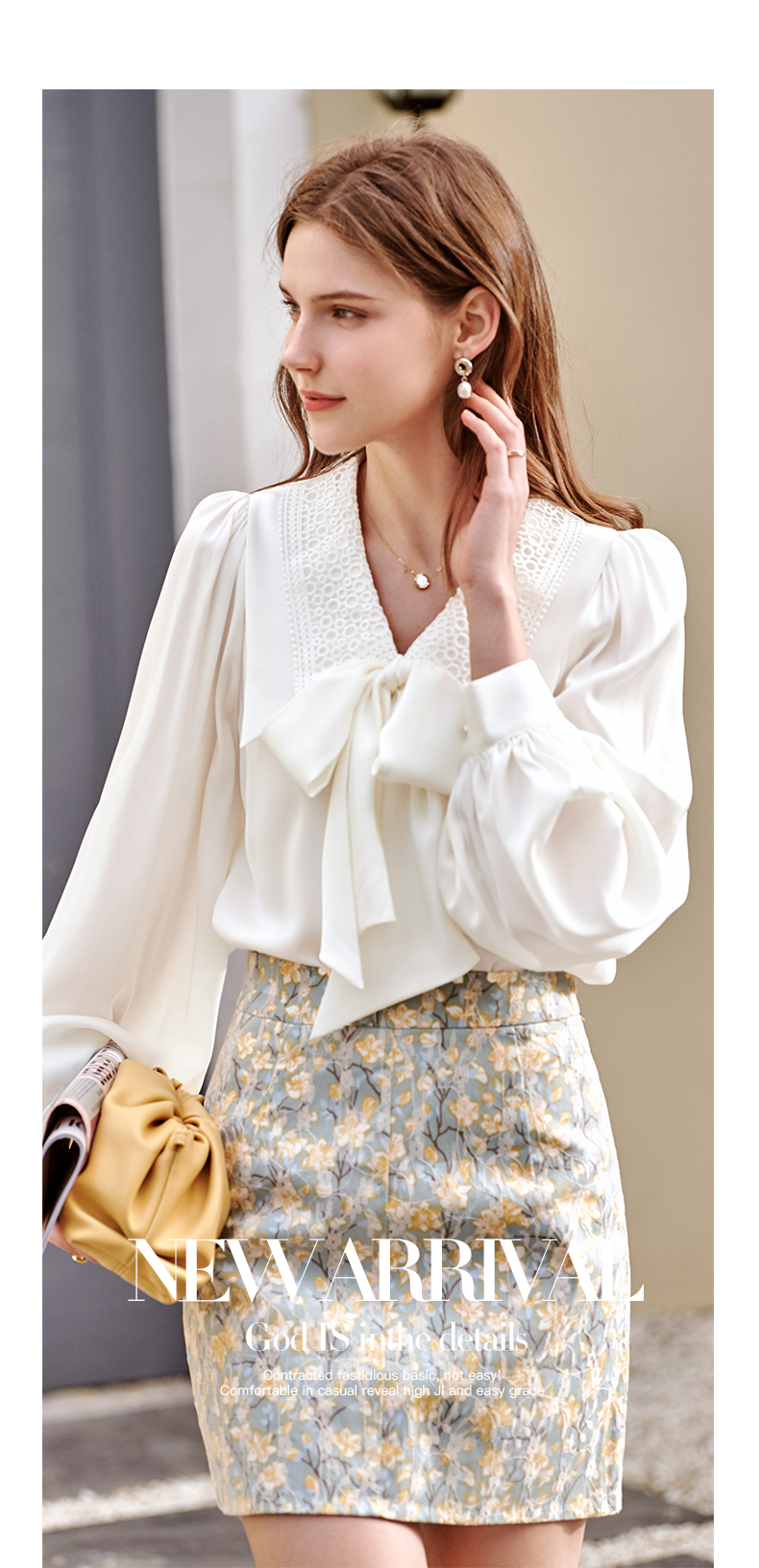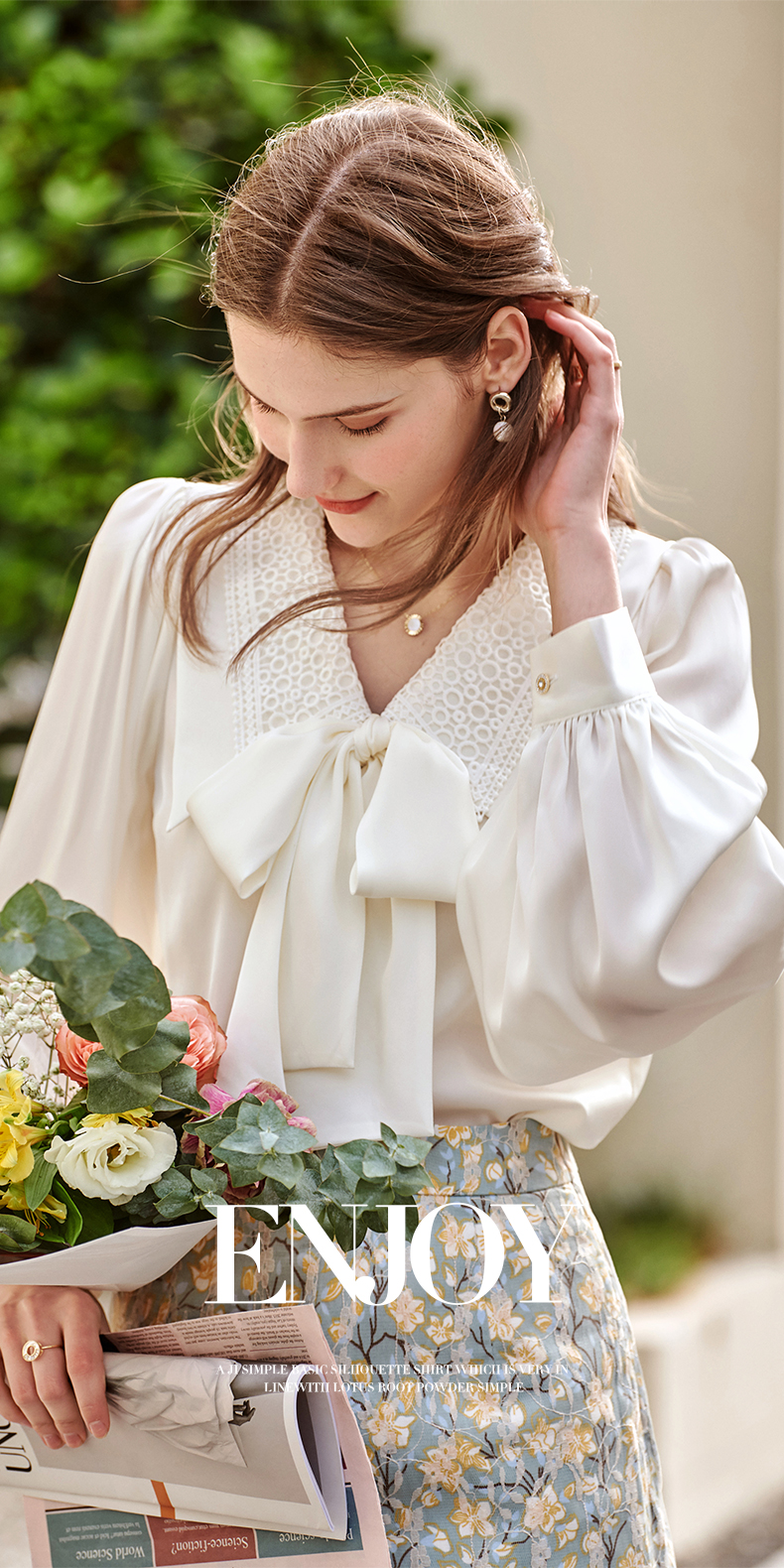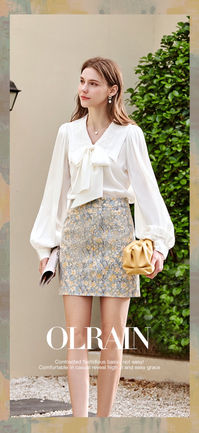 欧芮儿长袖缎面衬衫女春季新款复古优雅时髦气质翻领设计感衬衣