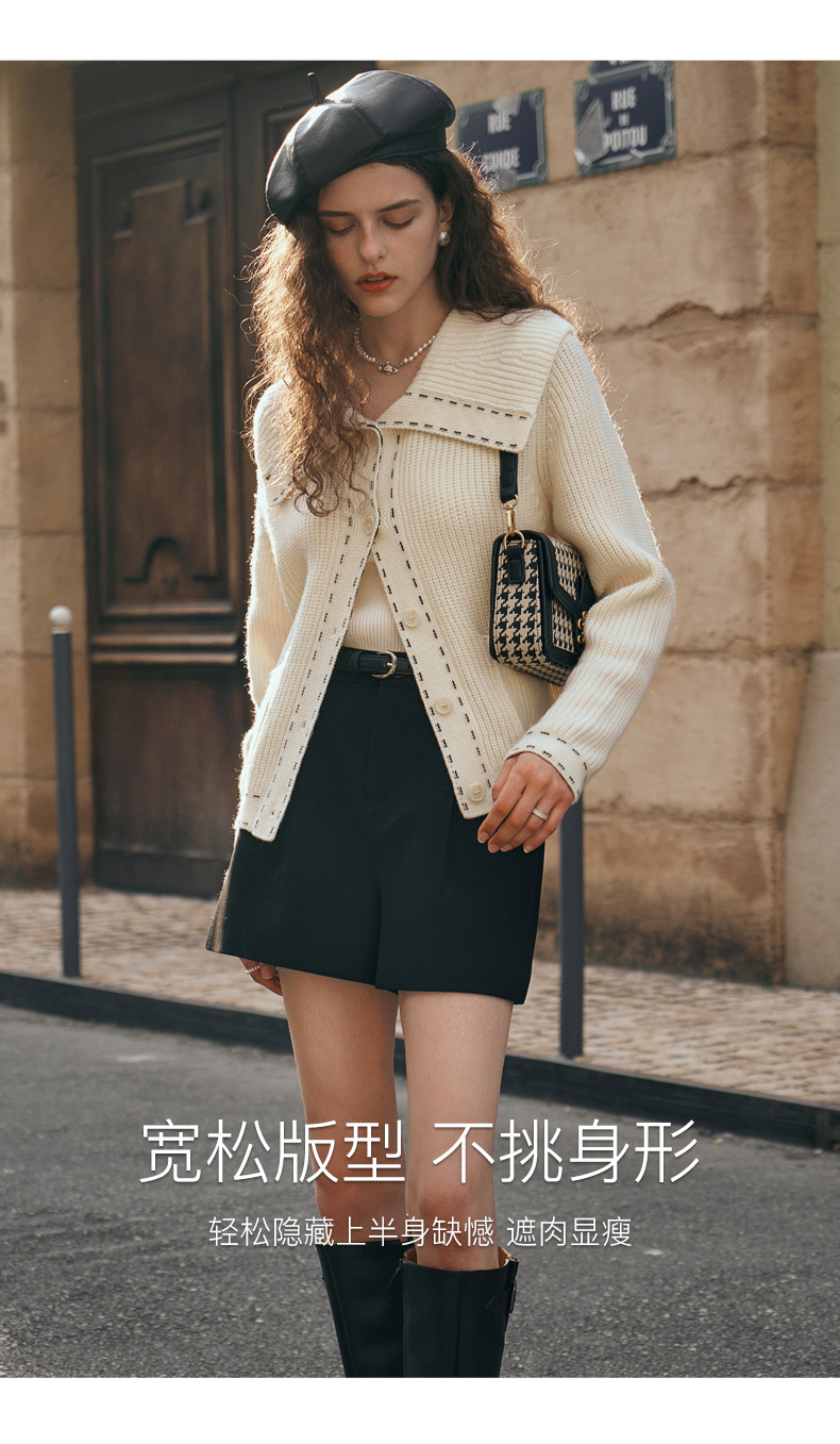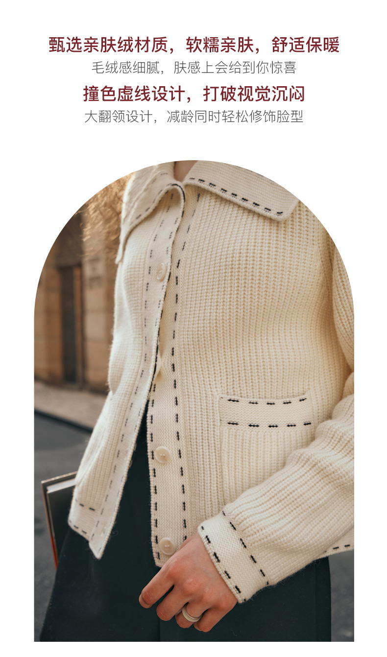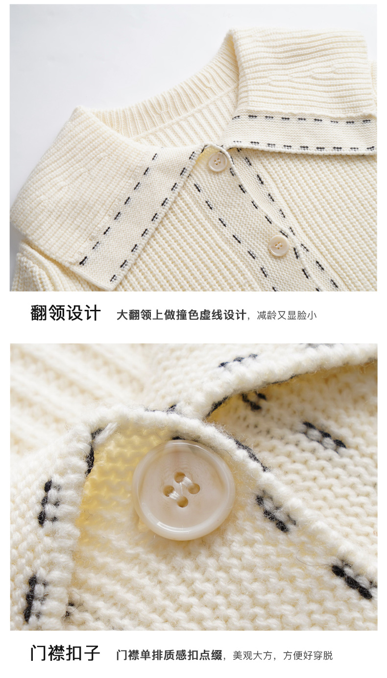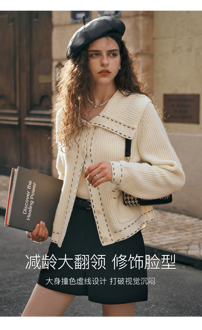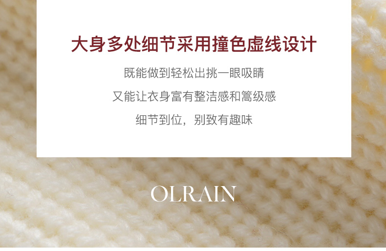 OLrain欧芮儿大翻领针织开衫女初秋2023新款宽松气质撞色毛衣外套