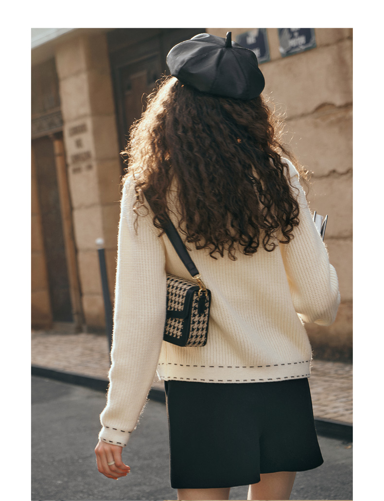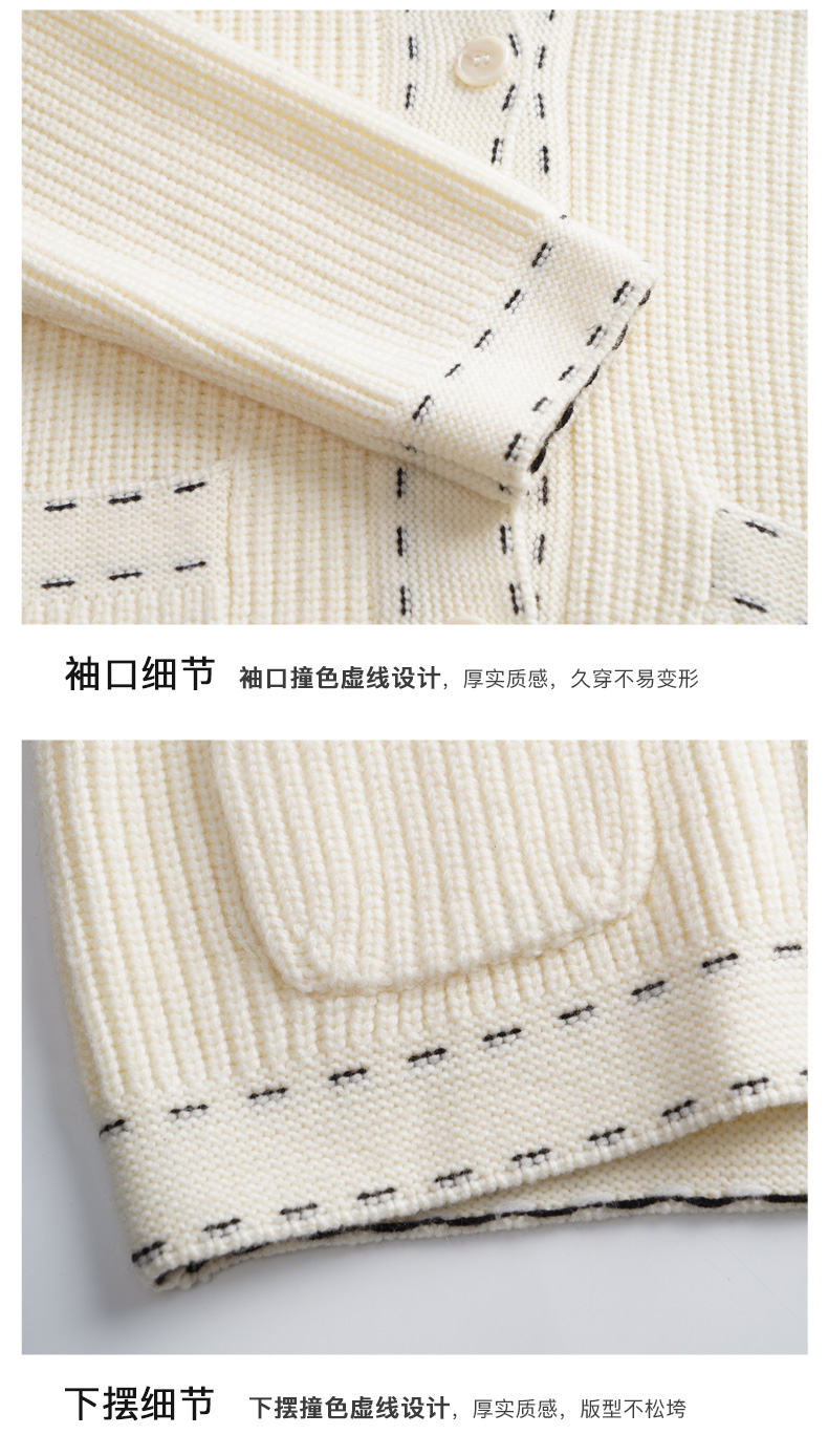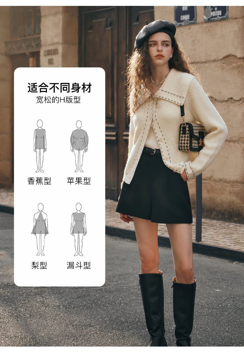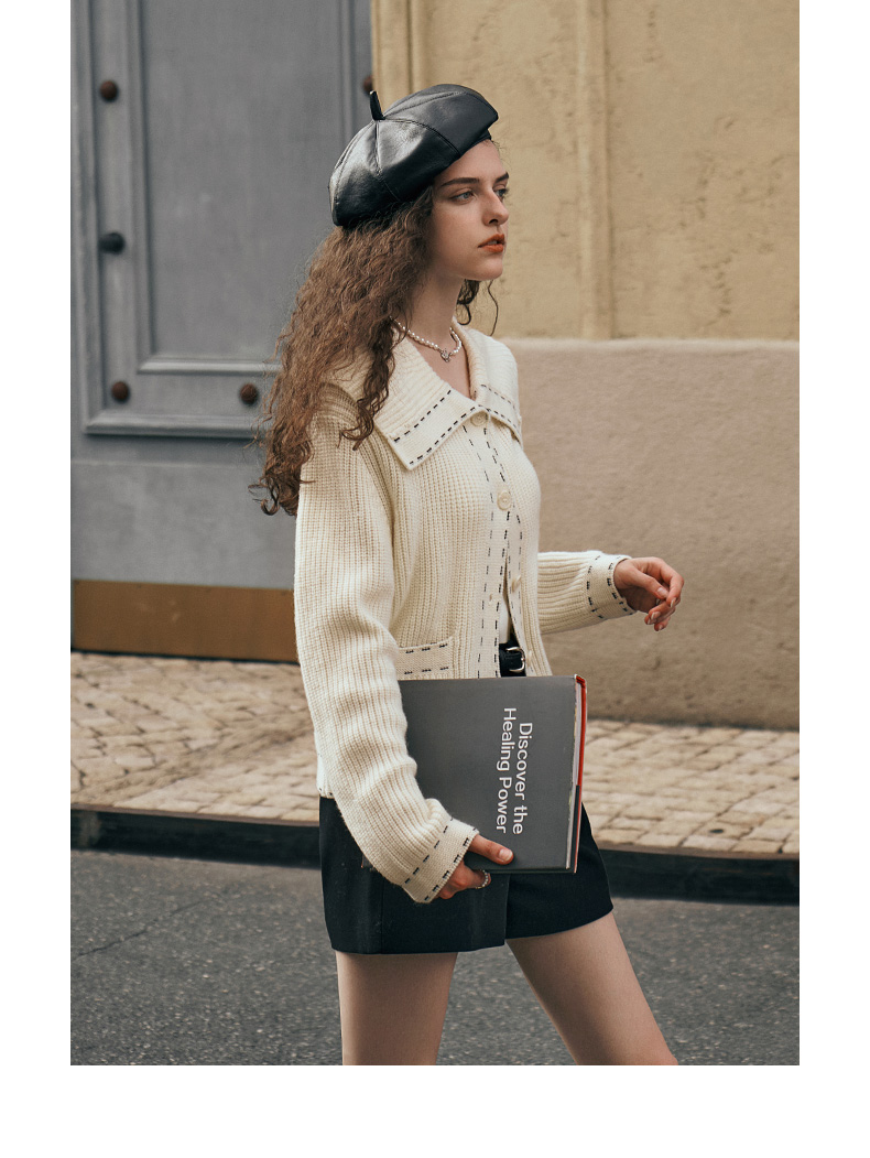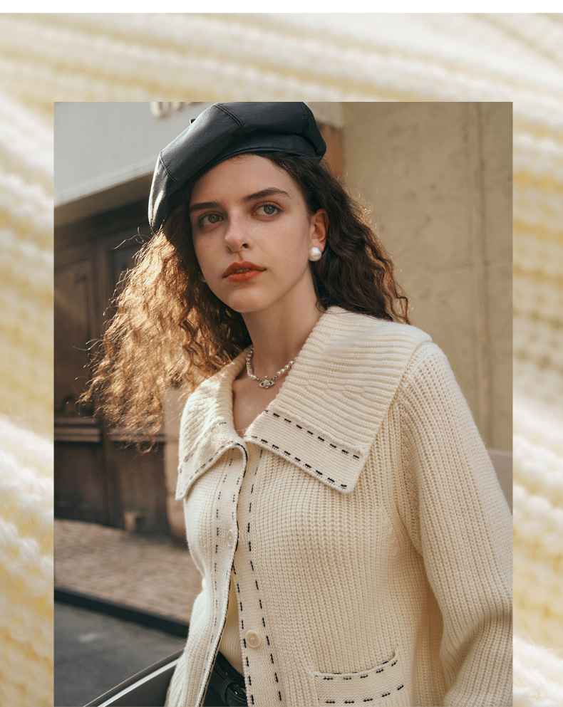 OLrain欧芮儿大翻领针织开衫女初秋2023新款宽松气质撞色毛衣外套