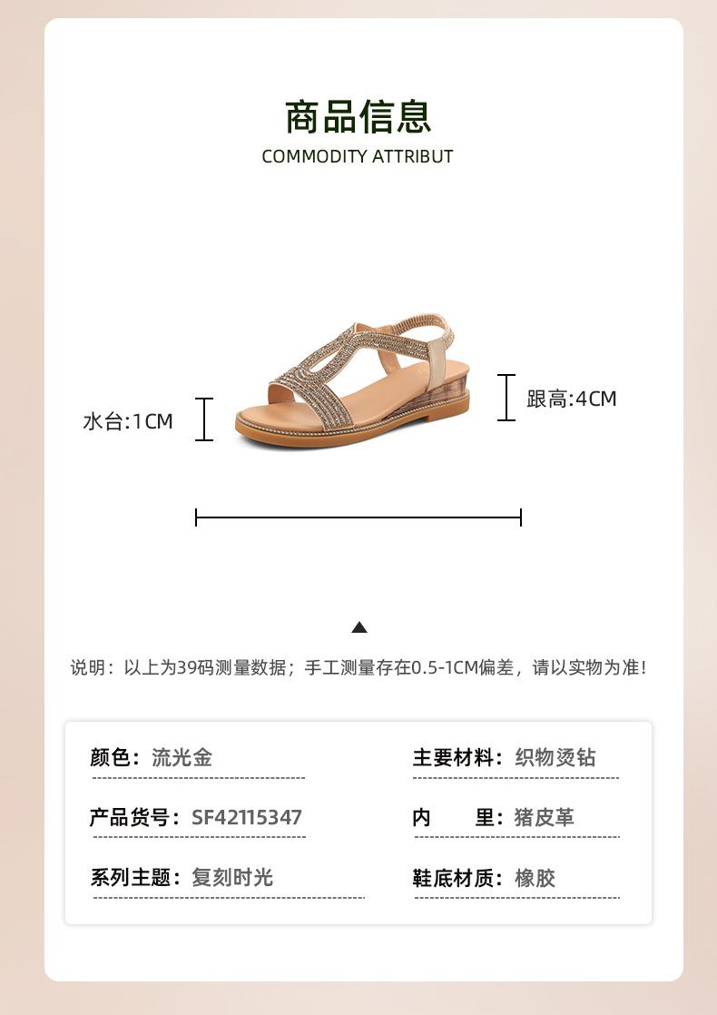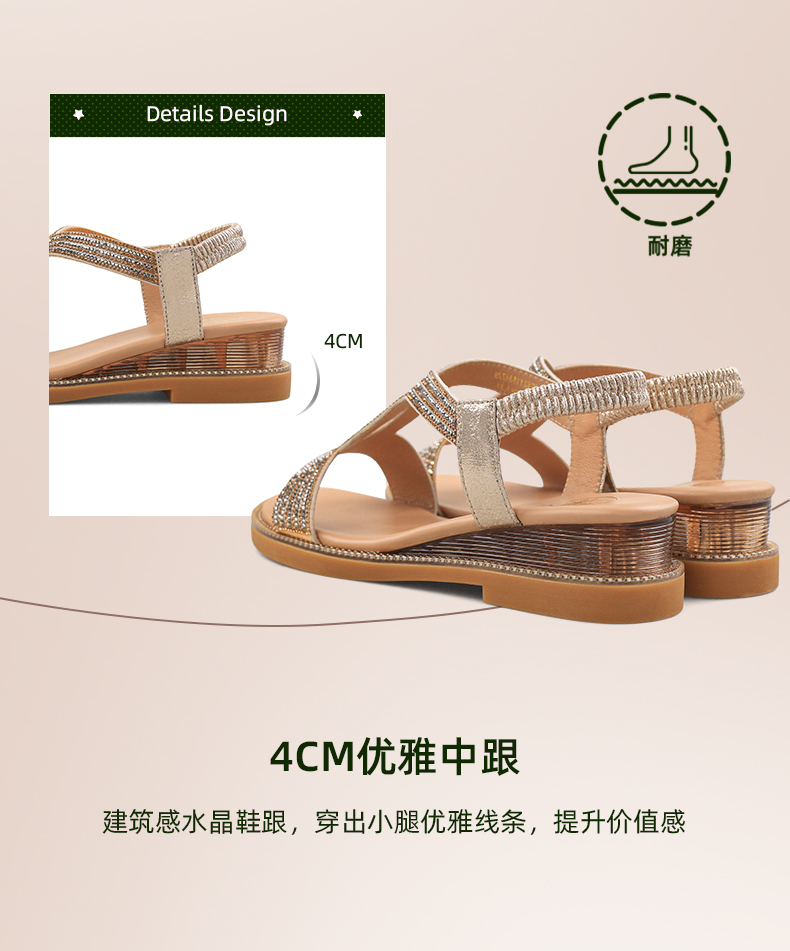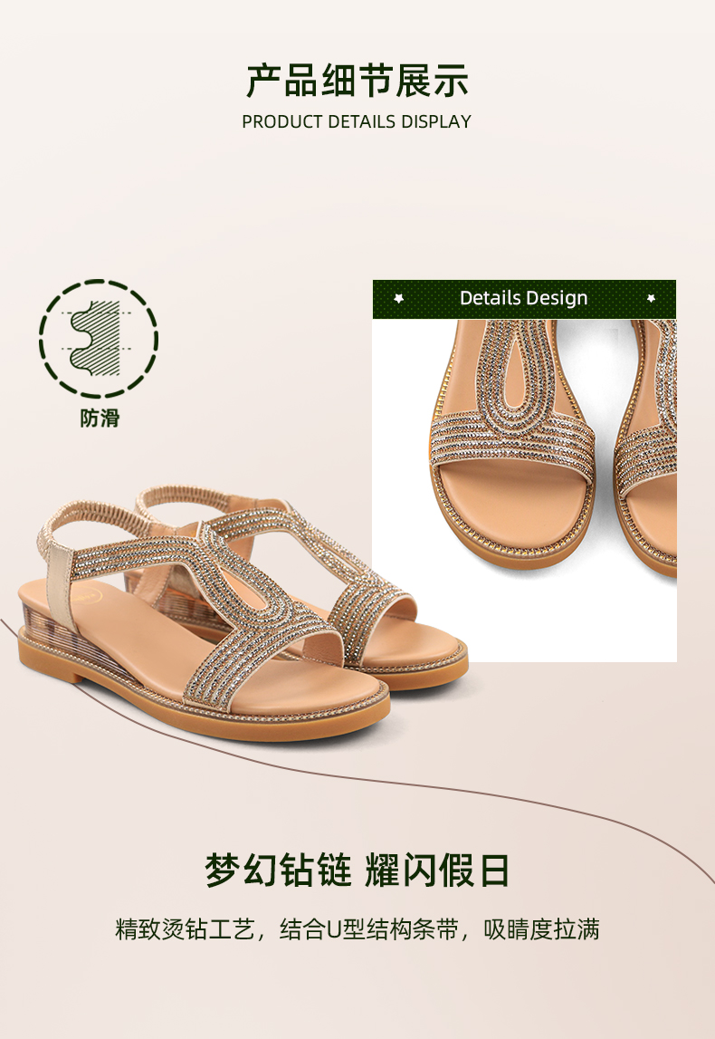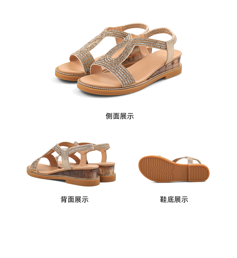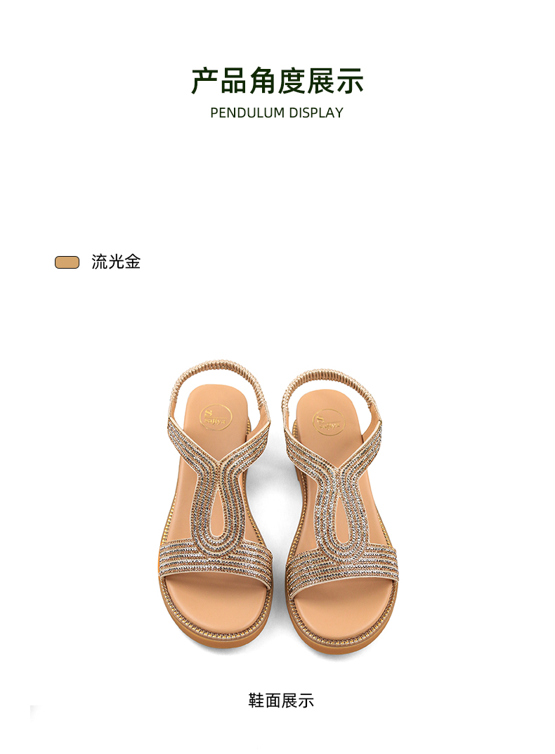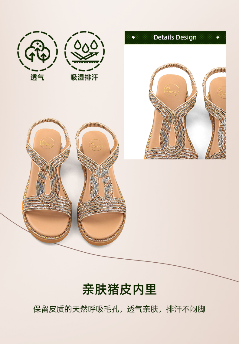 Safiya/索菲娅 2024夏季新品波西米亚闪钻复古露趾度假休闲罗马鞋凉鞋SF32115047/SF42115347