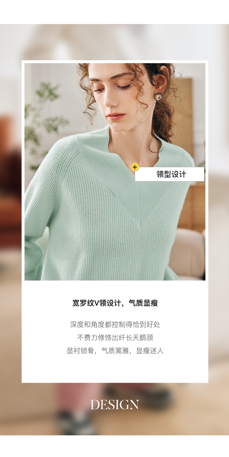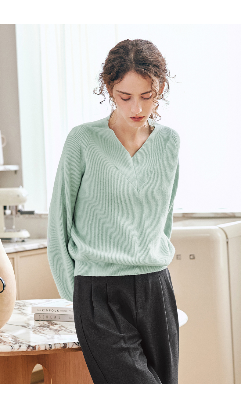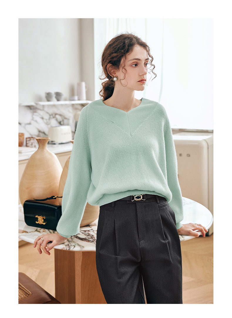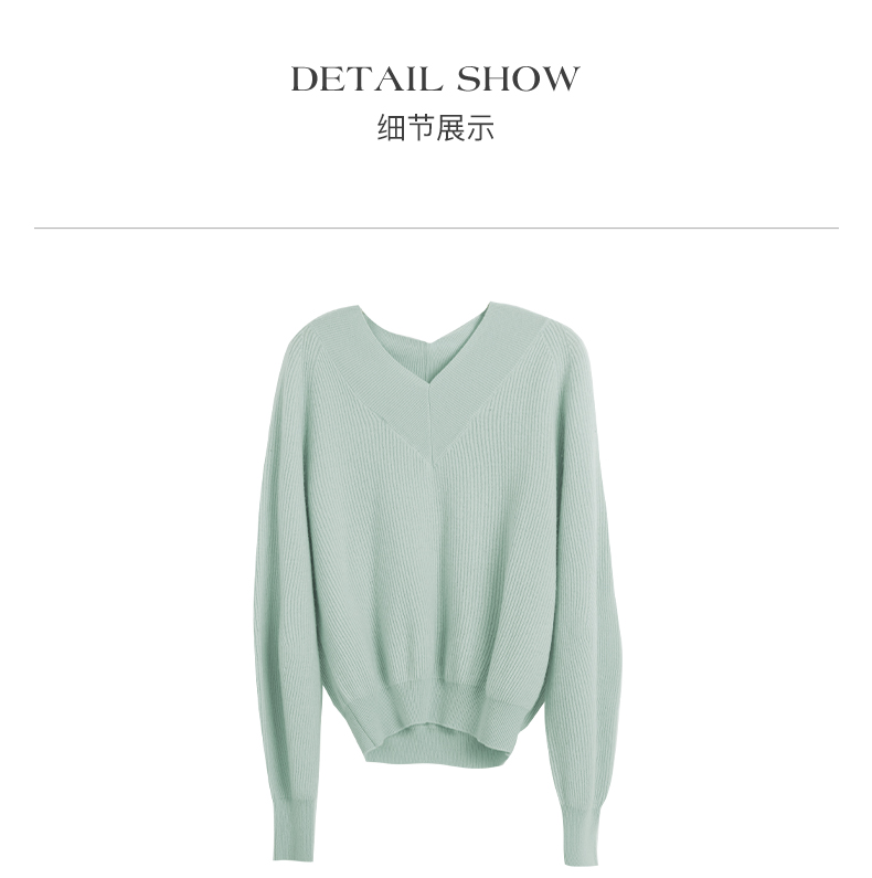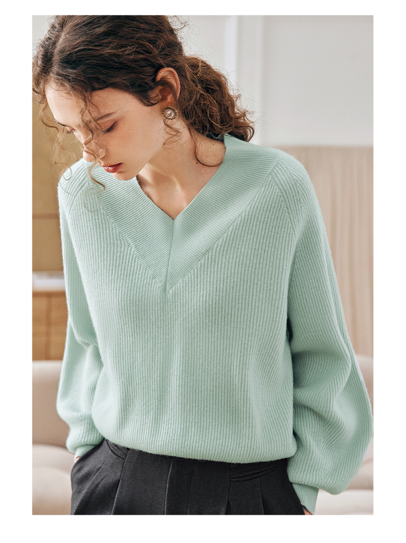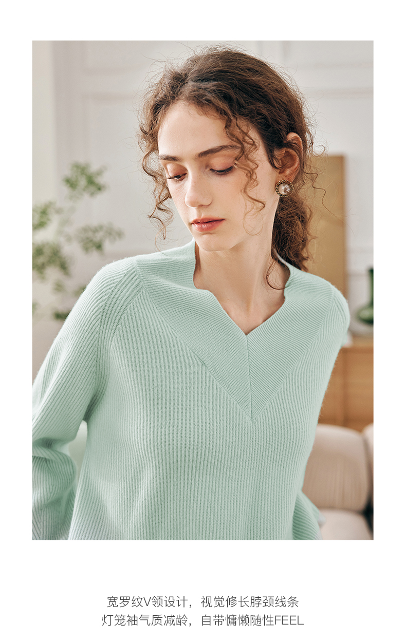 OLrain欧芮儿法式V领针织衫女秋季2023新款宽松慵懒灯笼袖套头衫