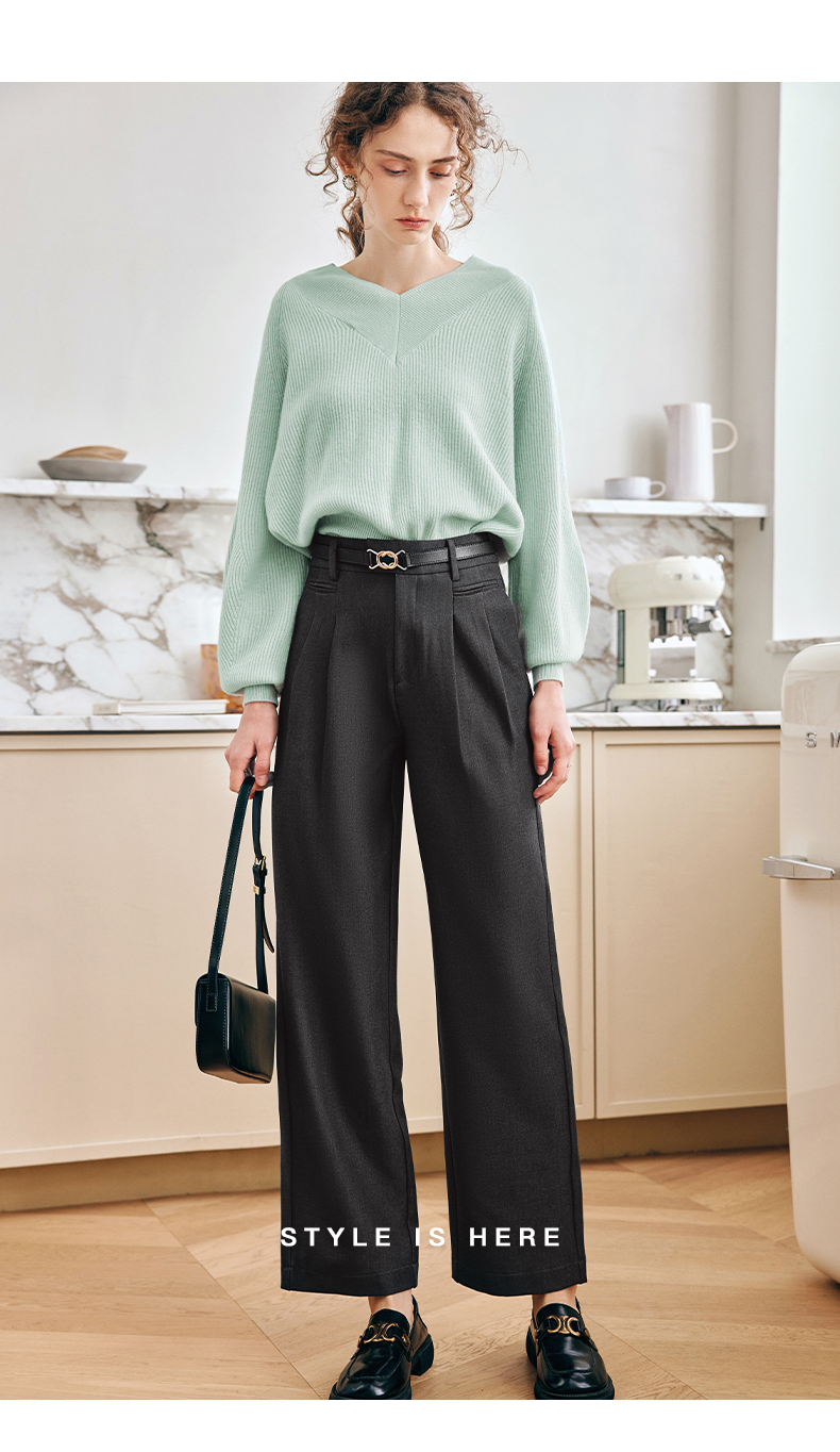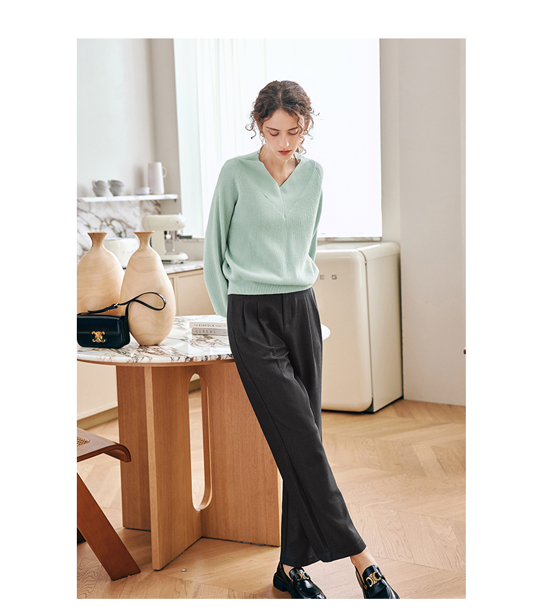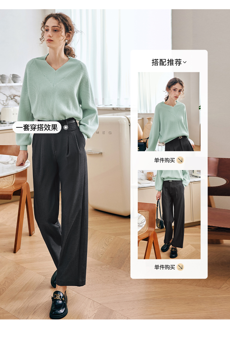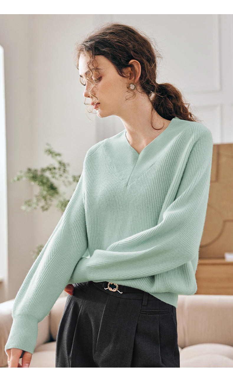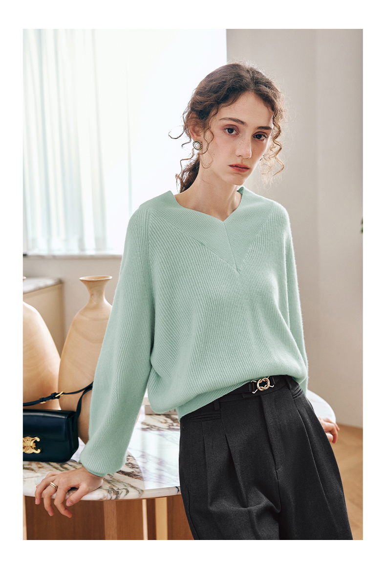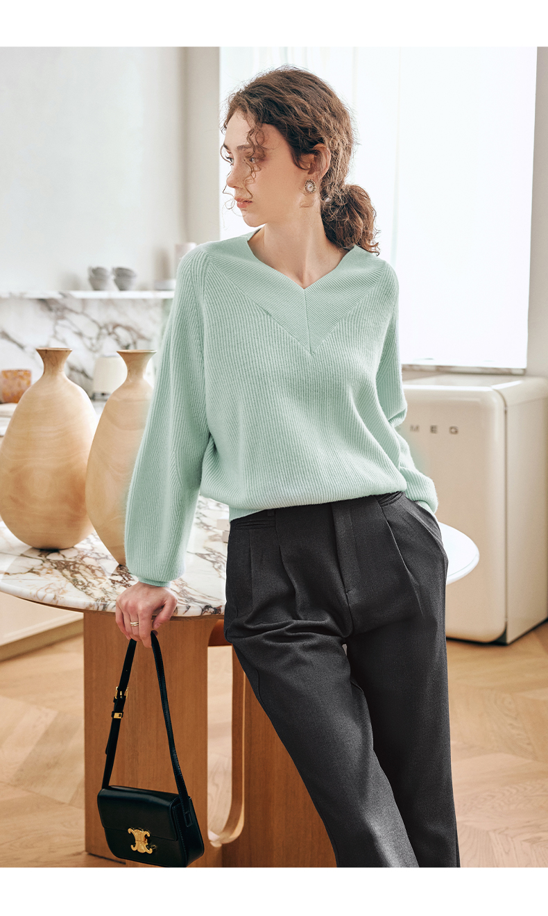 OLrain欧芮儿法式V领针织衫女秋季2023新款宽松慵懒灯笼袖套头衫