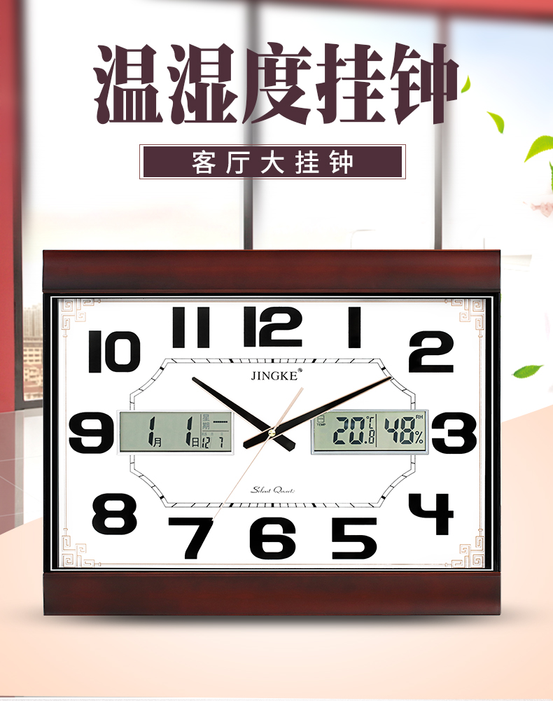 精科(JINGKE)挂钟 日历创意静音客厅钟表方形简约时钟居家挂表温湿度电子石英钟 0306 酒红色 液晶Z字款