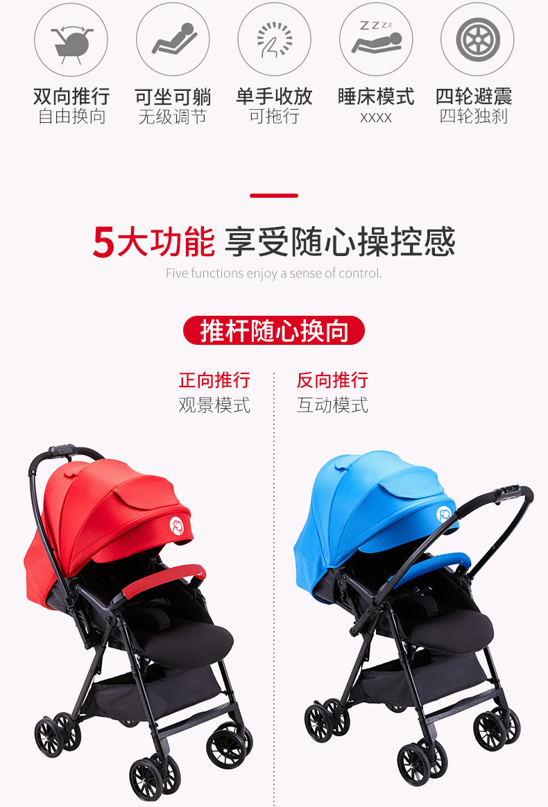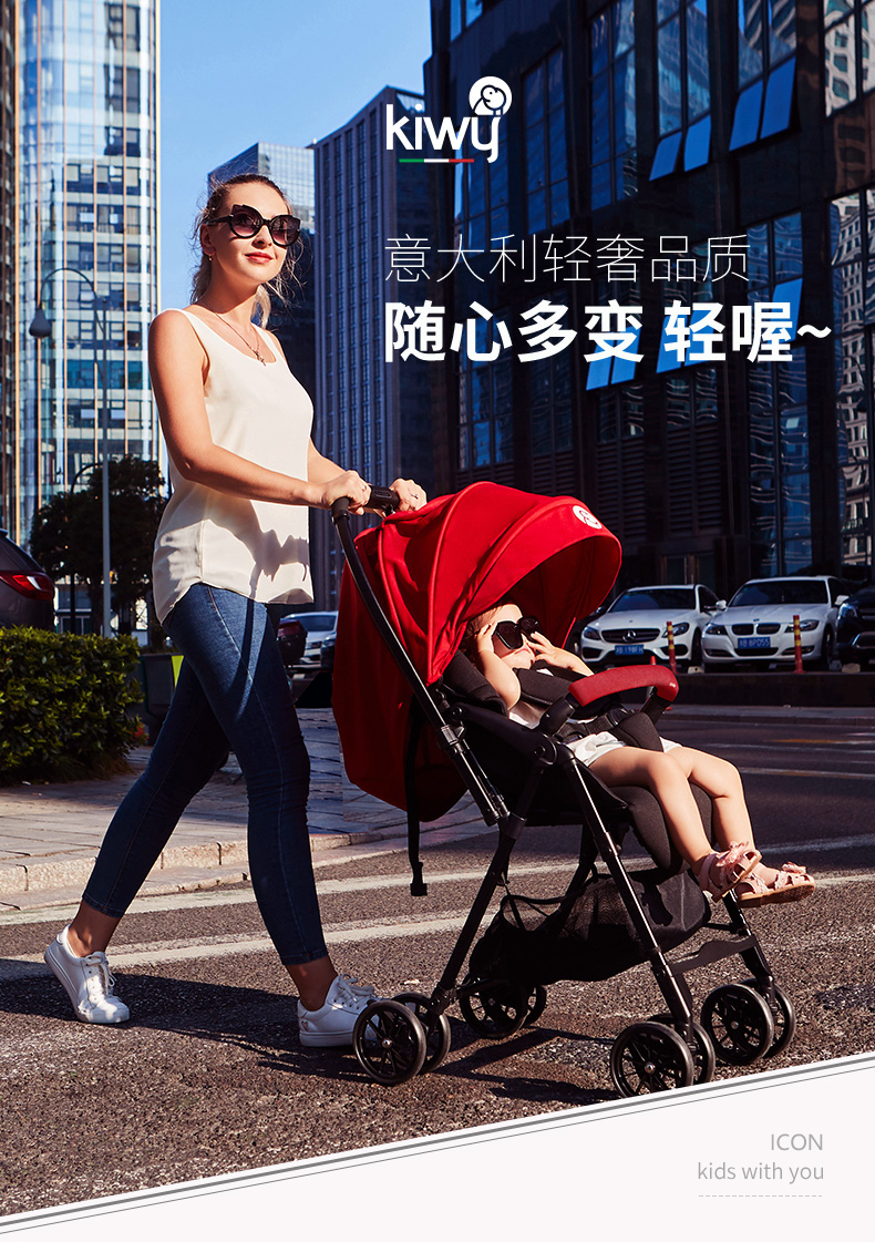意大利kiwy婴儿推车双向高景观轻便可坐可躺宝宝溜娃神器