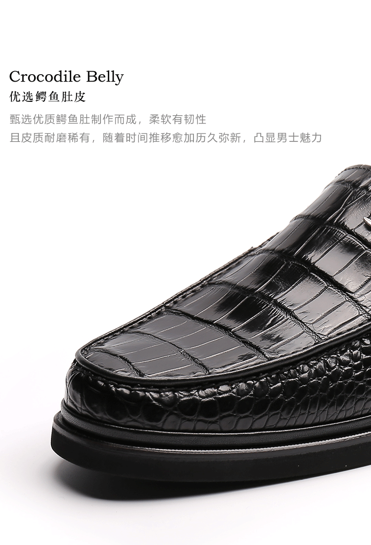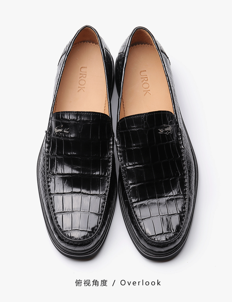 【21春夏新品】UROK新品鳄鱼手工制作男鞋休闲套脚软底乐福鞋舒适一脚蹬皮鞋