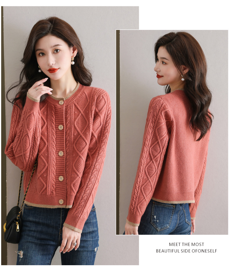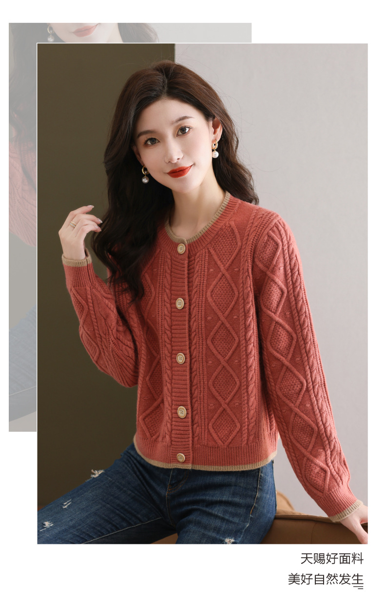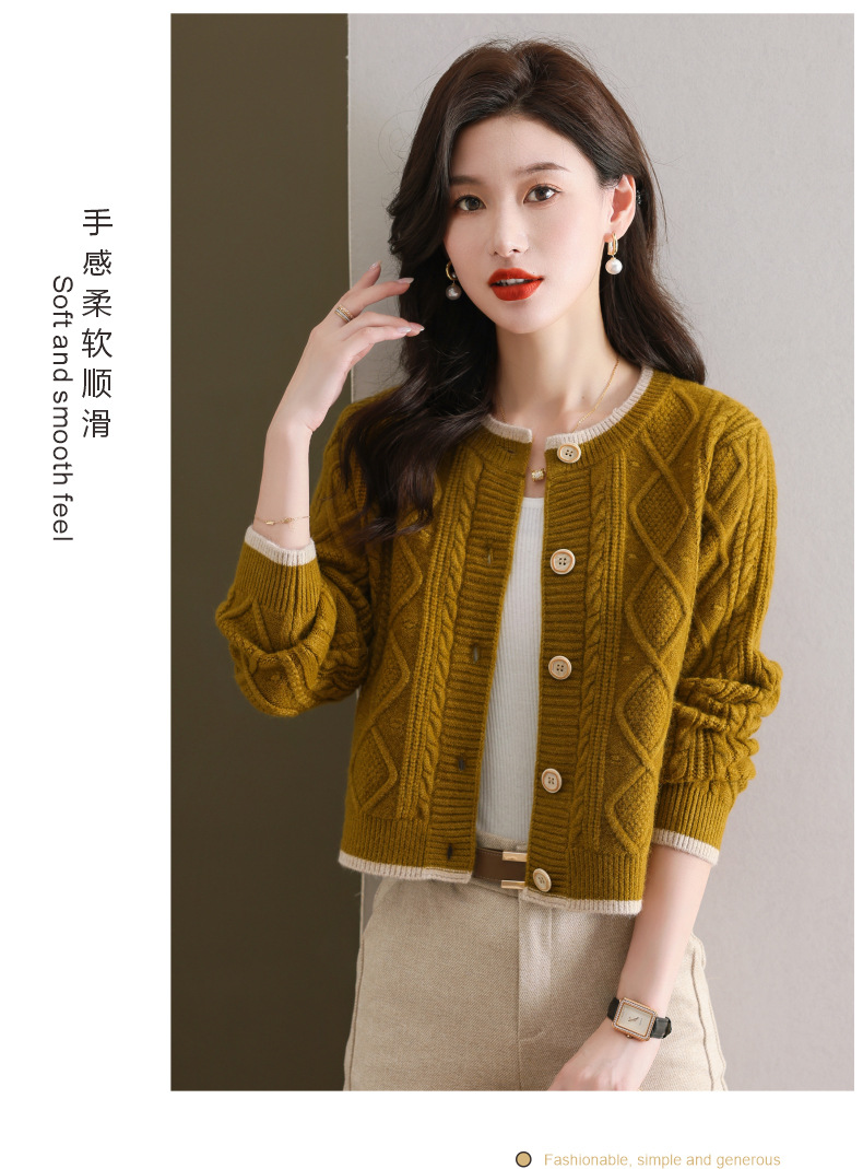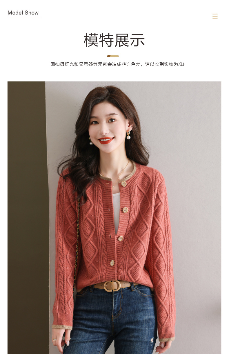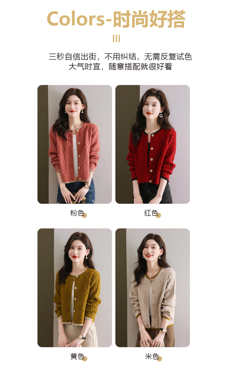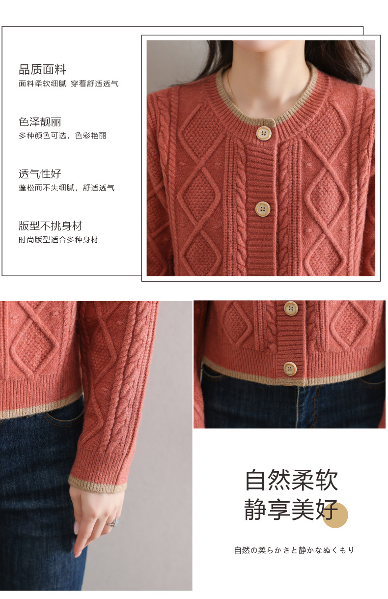 纯色百搭,休闲外搭圆领毛衣开衫女短款高腰春秋针织衫外套女小披肩CC-9-5132