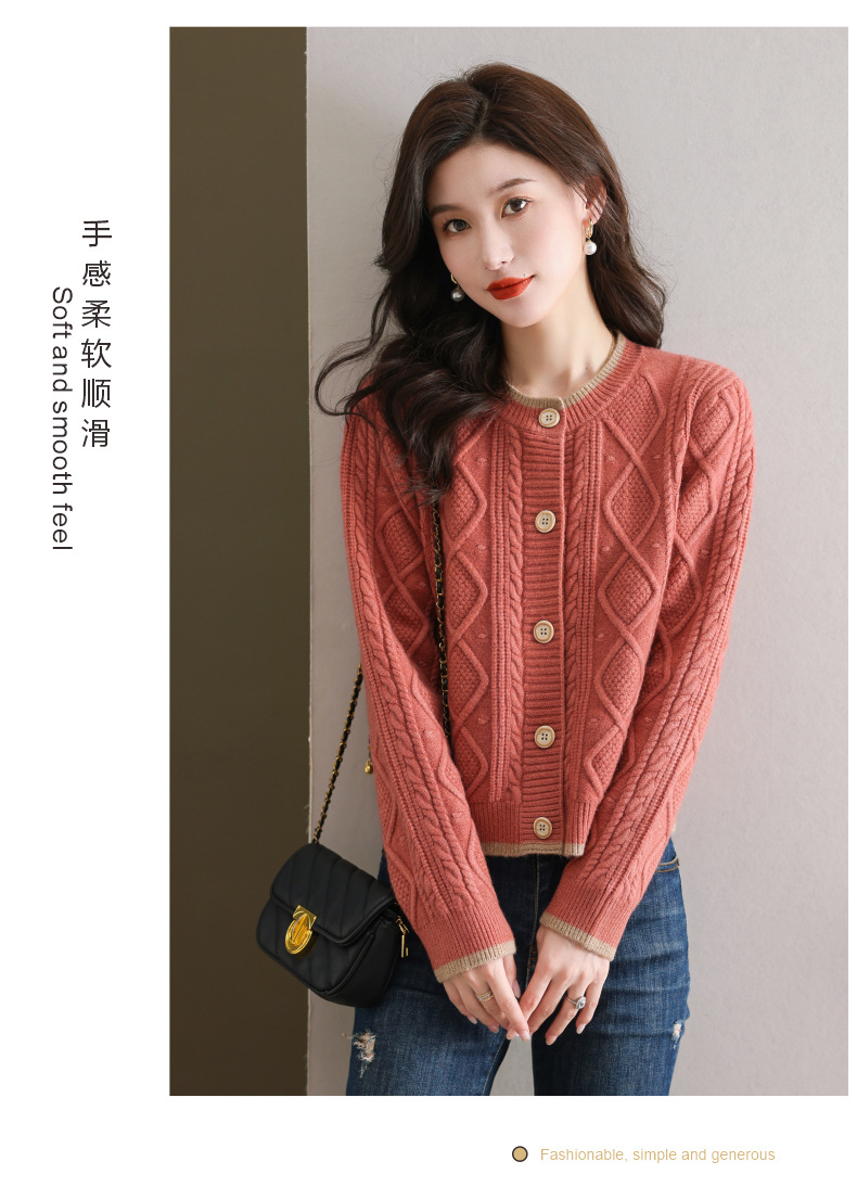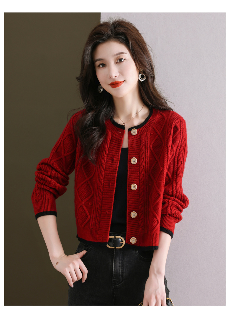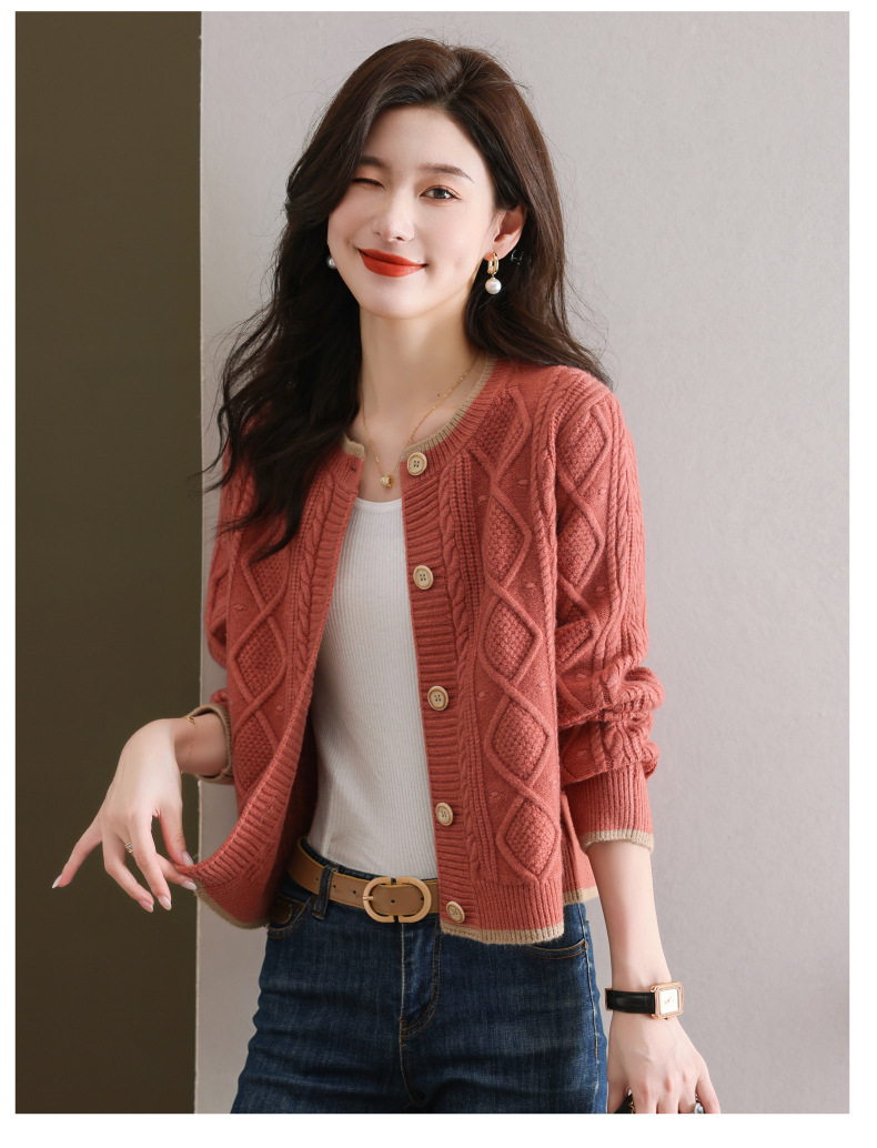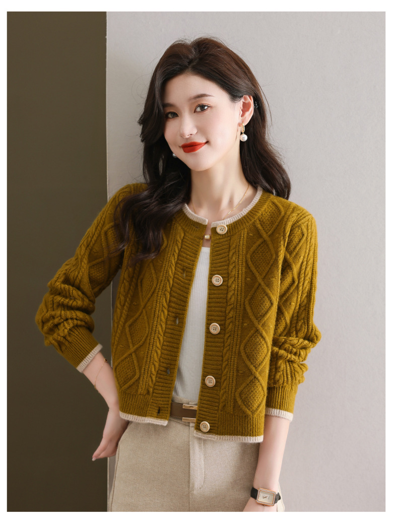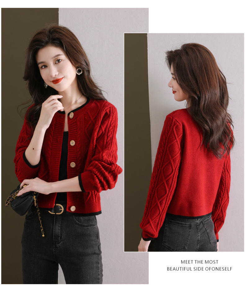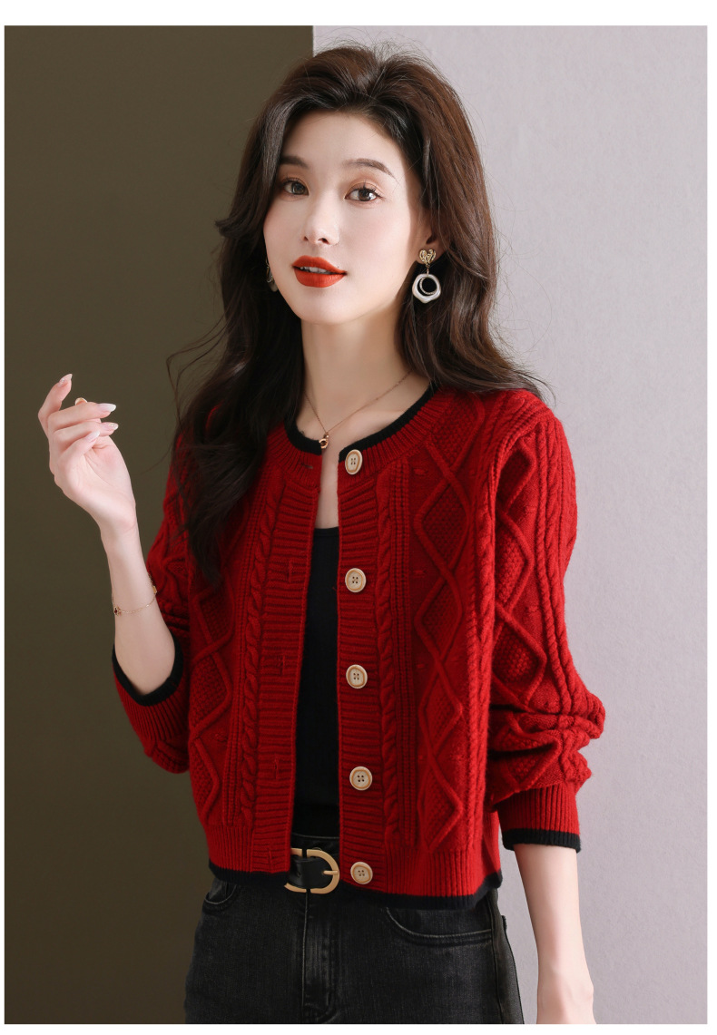 纯色百搭,休闲外搭圆领毛衣开衫女短款高腰春秋针织衫外套女小披肩CC-9-5132