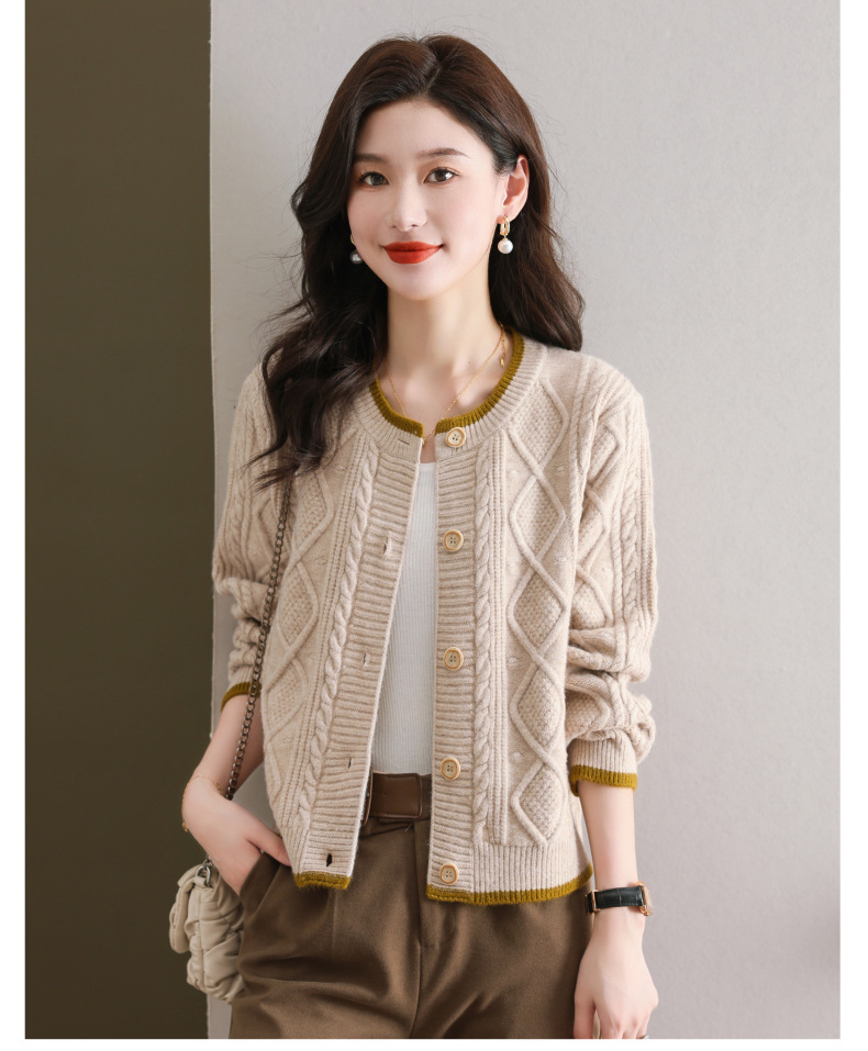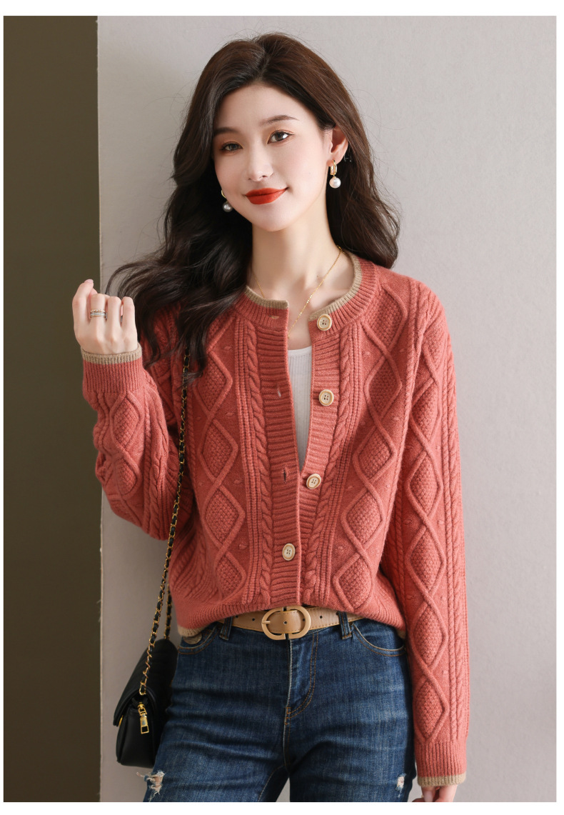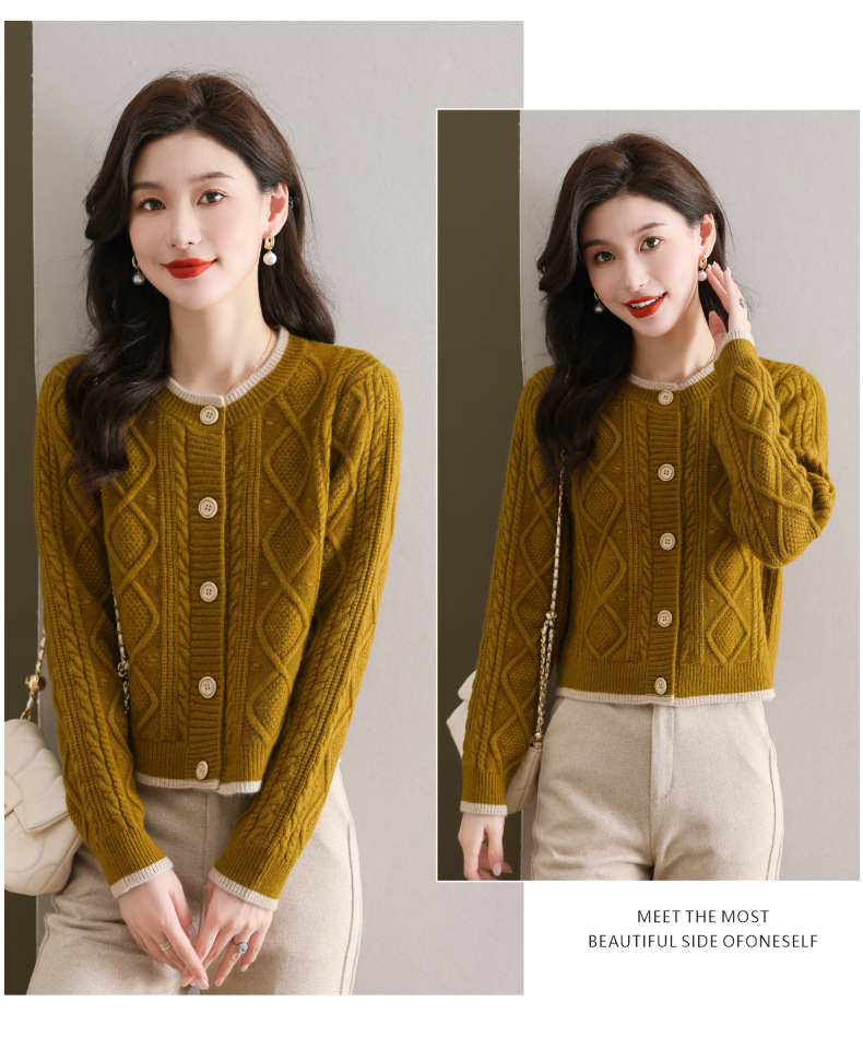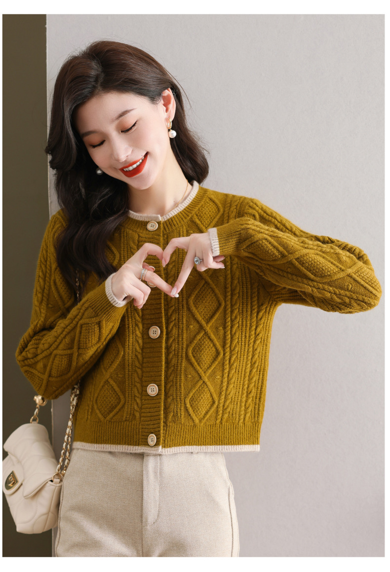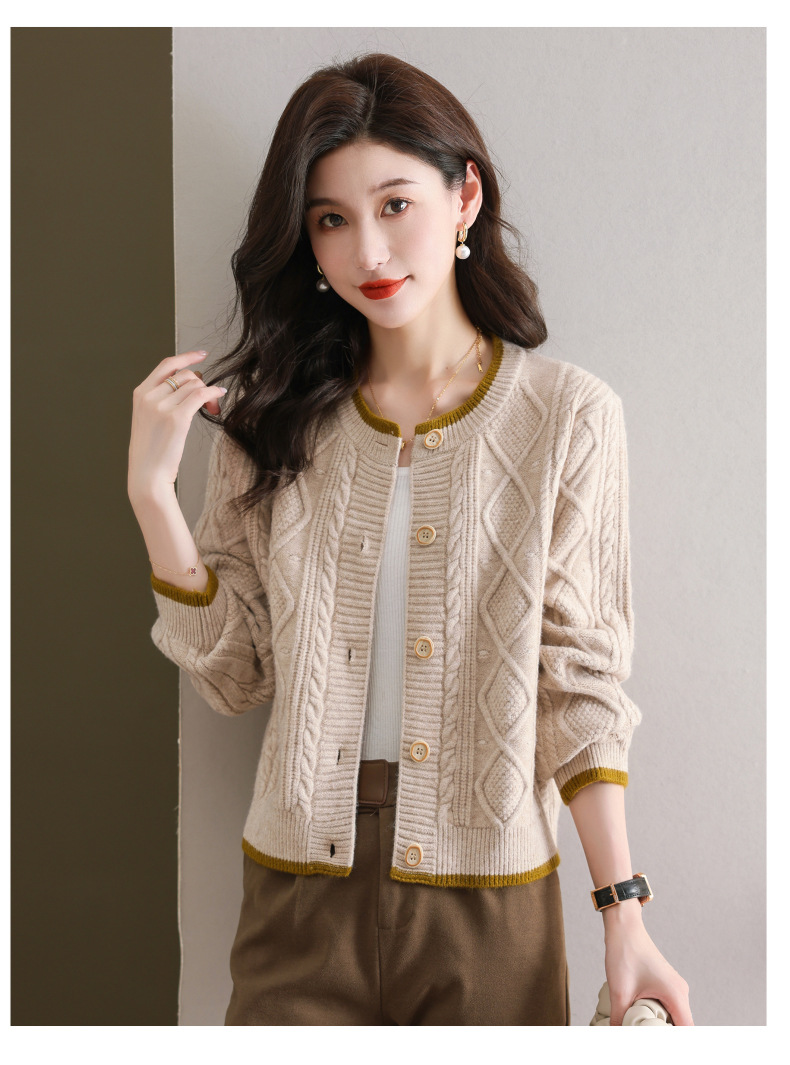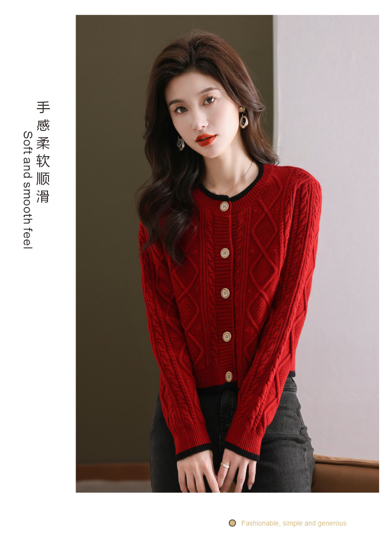 纯色百搭,休闲外搭圆领毛衣开衫女短款高腰春秋针织衫外套女小披肩CC-9-5132