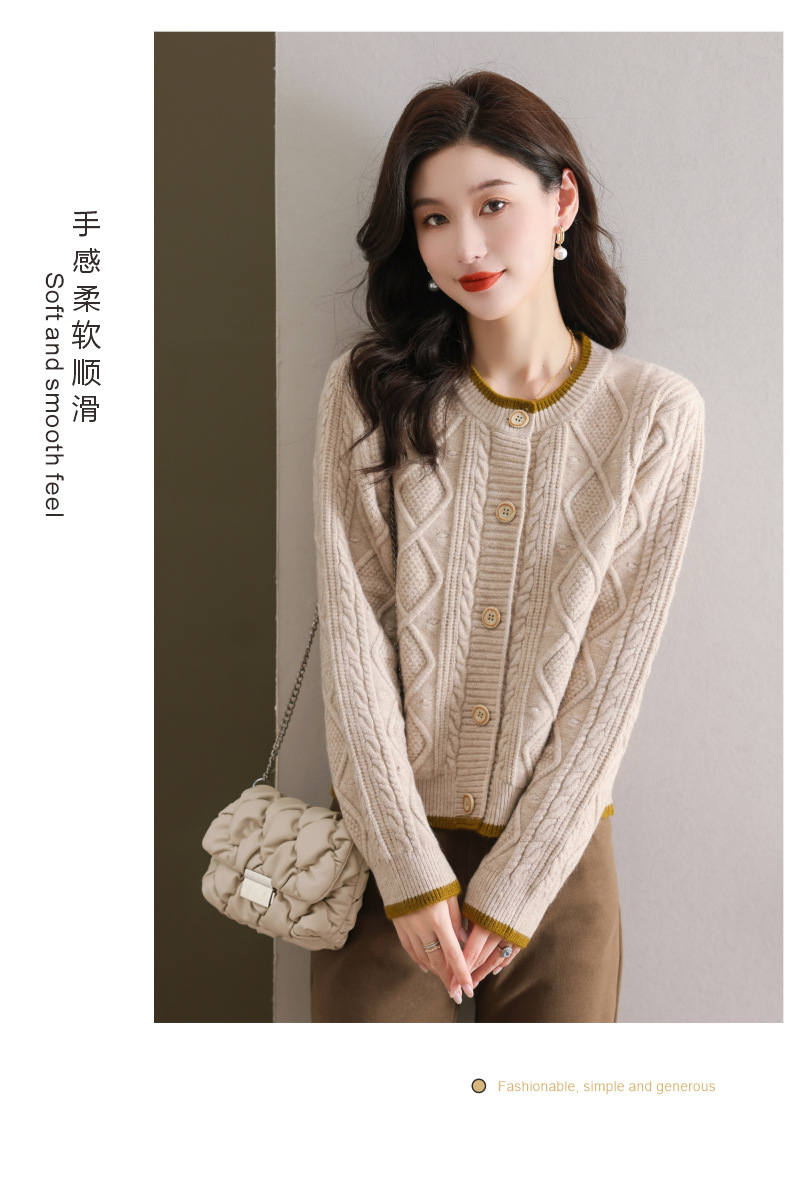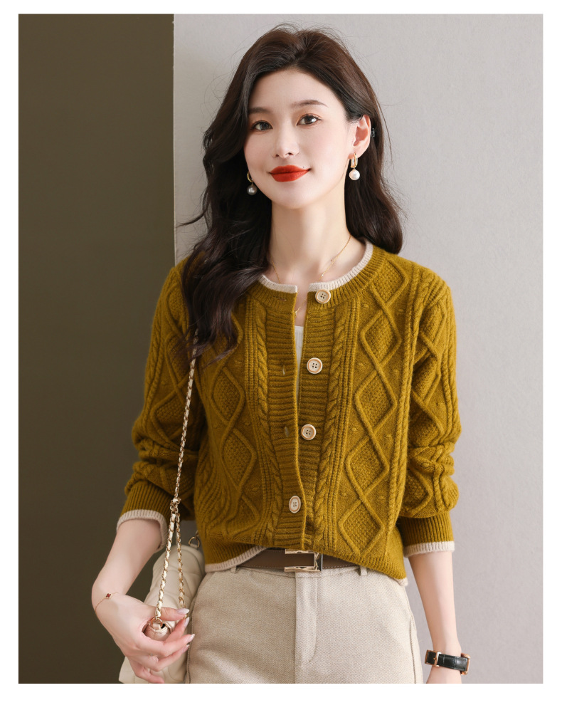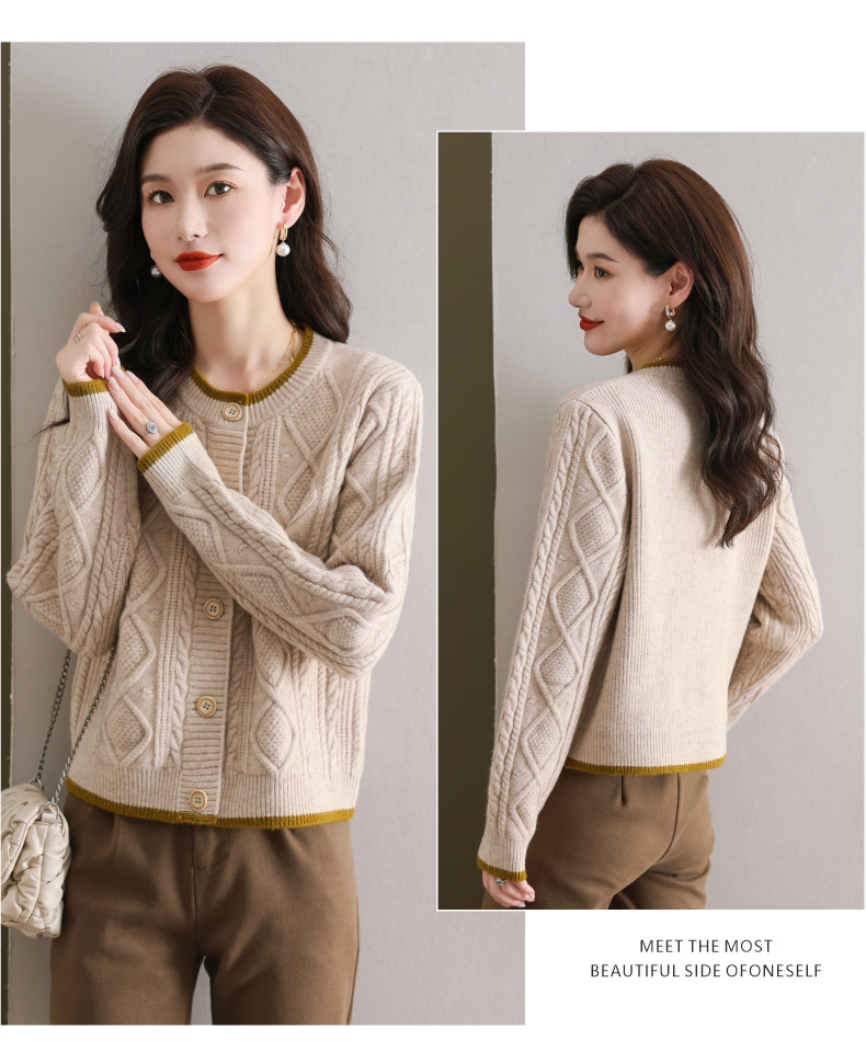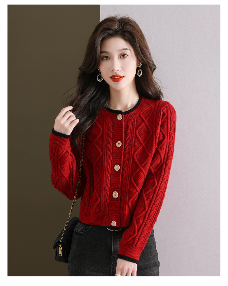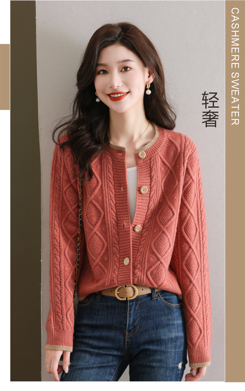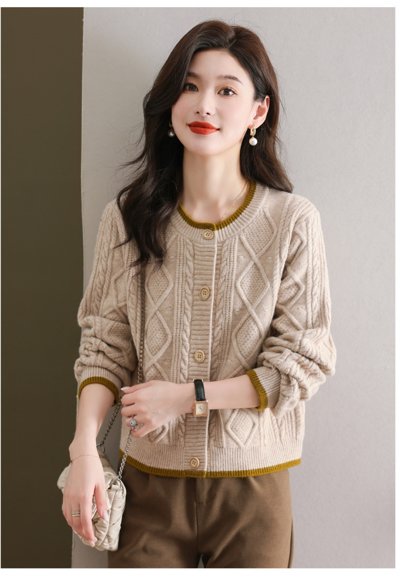 纯色百搭,休闲外搭圆领毛衣开衫女短款高腰春秋针织衫外套女小披肩CC-9-5132