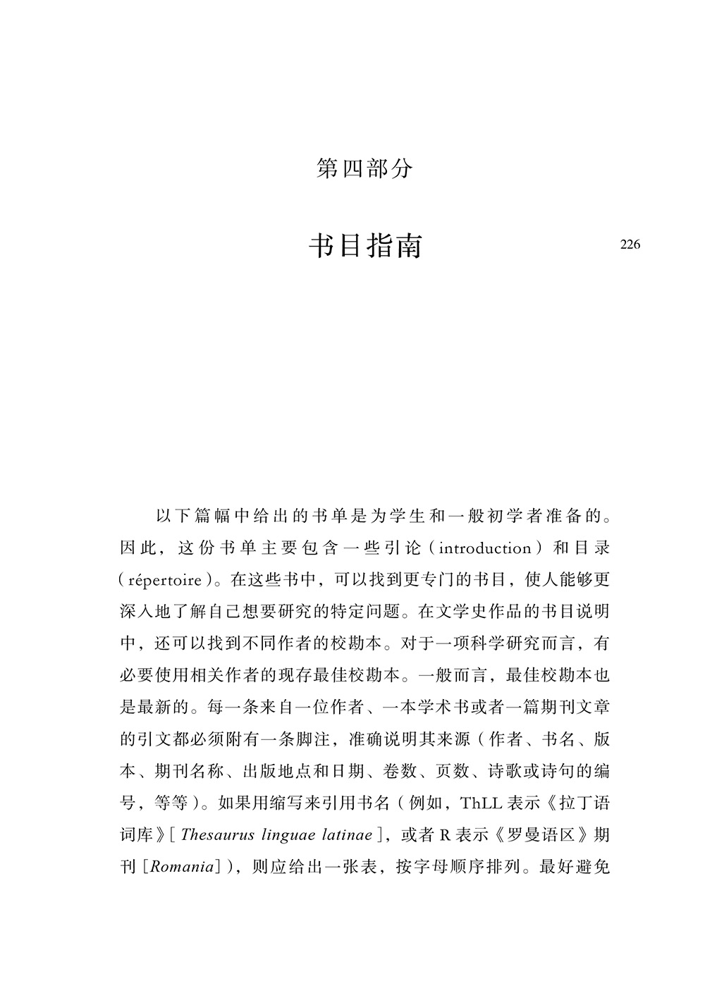 罗曼语族是公元三至八世纪间,从通俗拉丁语和意大利语族中衍生出来的现代语族,其中分布最广泛的语言为法语、西班牙语、意大利语和葡萄牙语,使用人数近12亿。罗曼语语文学研究是在比较文学和世界文学领域中作为真正的文学批评不可或缺的先行学科,语文学不仅仅是一门辅助的工具性学科,实际上是对于任何由语言介质构成的艺术作品为对象的文学判断的内在把握。本书写于1943年(作者在伊斯坦布尔避难期间),《摹仿论》虽已成型,尚未孵化。而此书充分展现了他宏阔的研究视野、丰富的知识积累以及对资料文献的熟谙。受到战争的影响,他难以接触国际同行和原始图书资料,所以在书中并没有加注释。但是奥尔巴赫在正文的阐述中有理有据、旁征博引,在全书最后一部分,他还列出了长达几十页的参考书目。本书包含三大部分:“语文学及其不同形式”“罗曼语言的起源”和“文学时期概览”,这原本是一份教学材料,意在为土耳其学生提供一个基本框架,因而此书由浅入深地阐述罗曼语语文学研究的源流和意义,被同行评价为“跨越严谨的技术界限,以‘人文’方式展现的一本教材”。