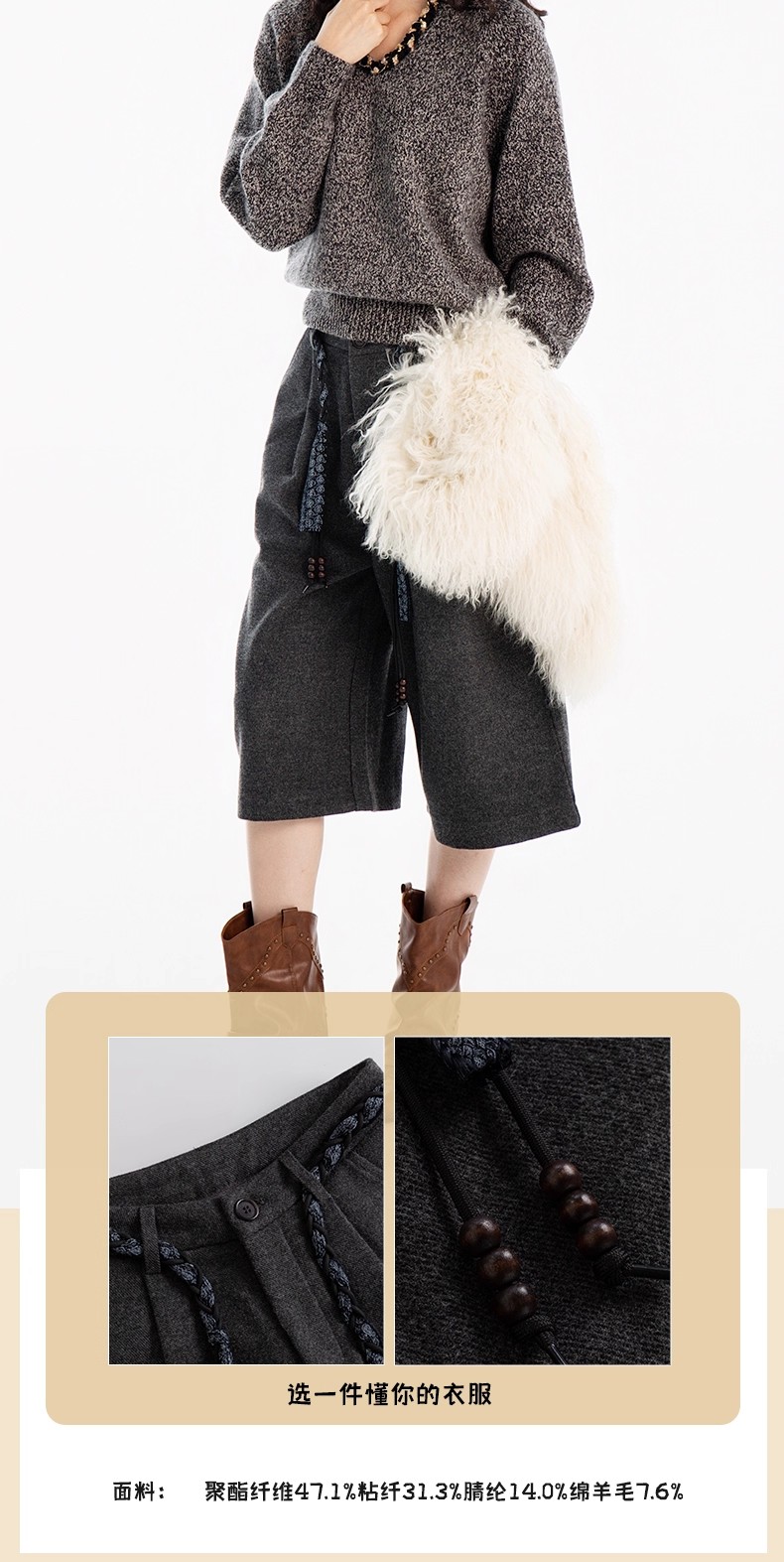 【门店同款】ENJOY冬季复古编织腰带中裤 167293706