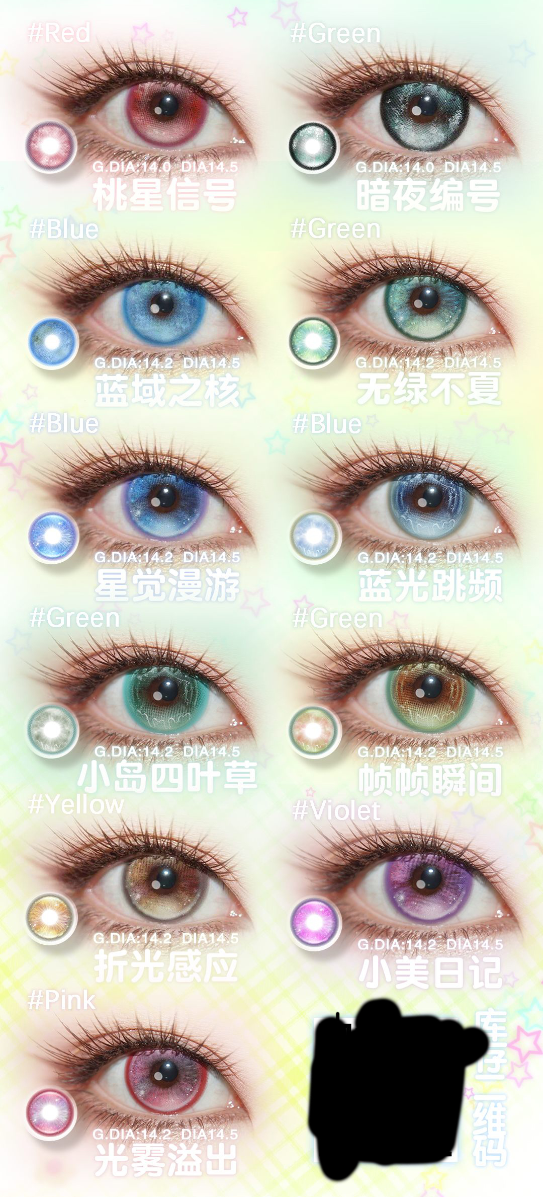 isoralook半年抛 桃星信号/暗夜编号/蓝域之核/无绿之夏/星觉漫游/蓝光跳频/小岛四叶草/帧帧瞬间/折光感应/小美日记/光雾溢出 14.5mm 粉绿蓝棕