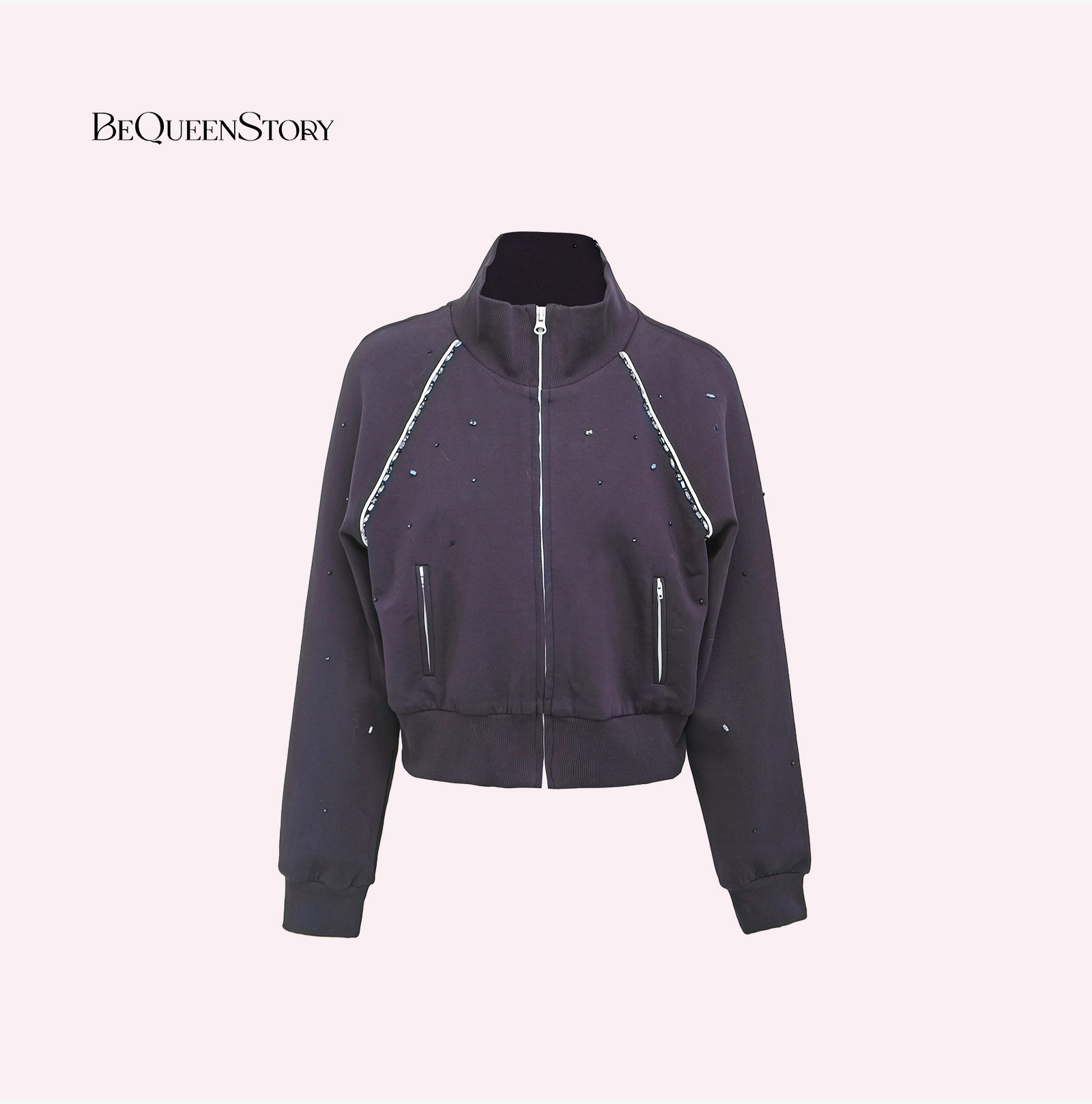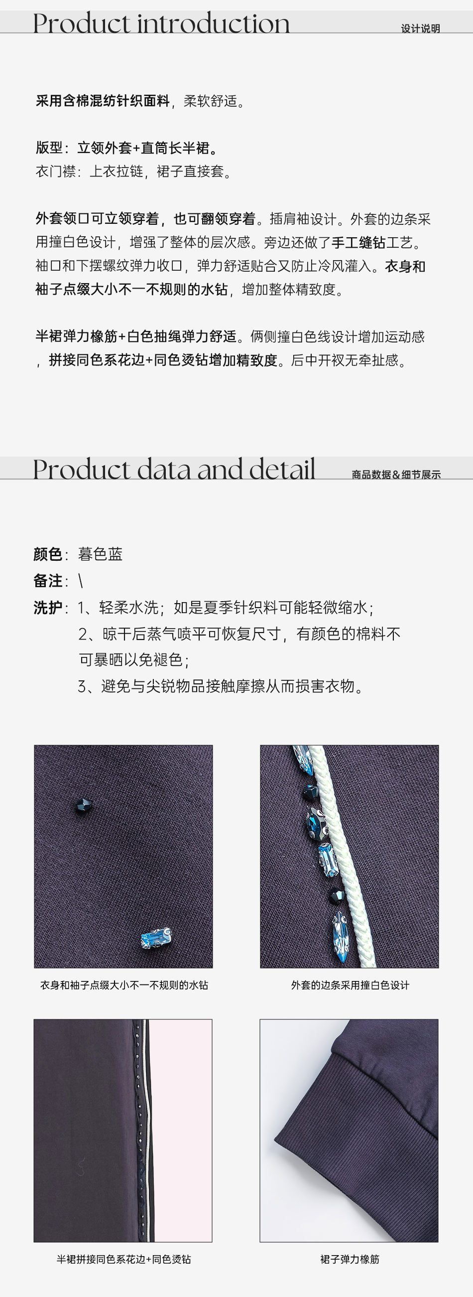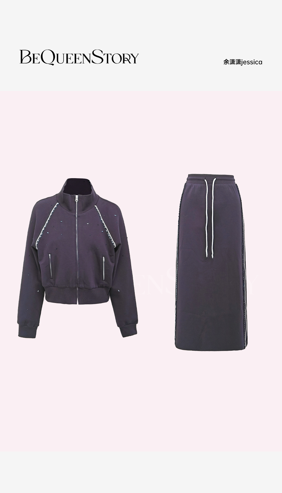 余潇潇【心动西区】棉感手工缝钻设计立领外套&抽绳直筒长半裙