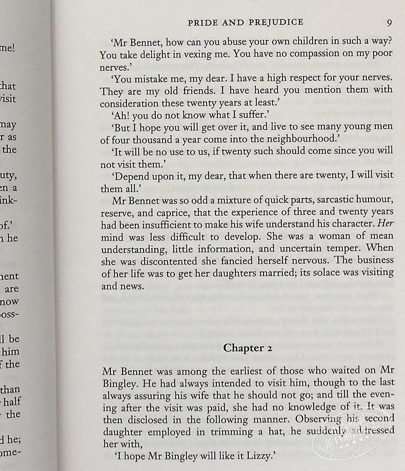 《傲慢与偏见》以英国文学中最著名的句子之一开篇,是一部具有讽刺意味的礼仪小说。在这部小说中,喋喋不休、头脑空空的贝内特夫人只有一个目标--为她的五个女儿各找一个好对象。在这一点上,她受到了她那玩世不恭、懒散的丈夫的嘲弄。