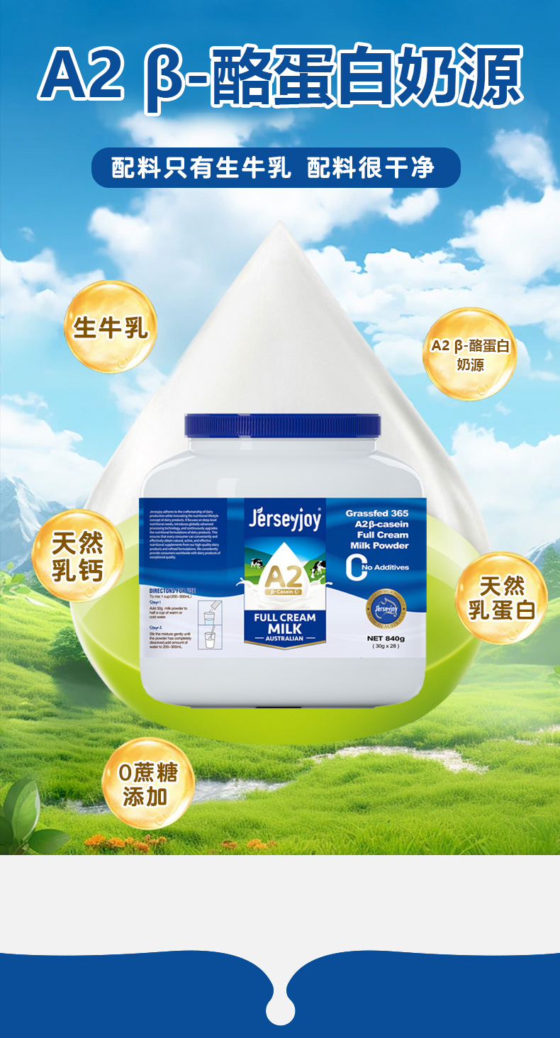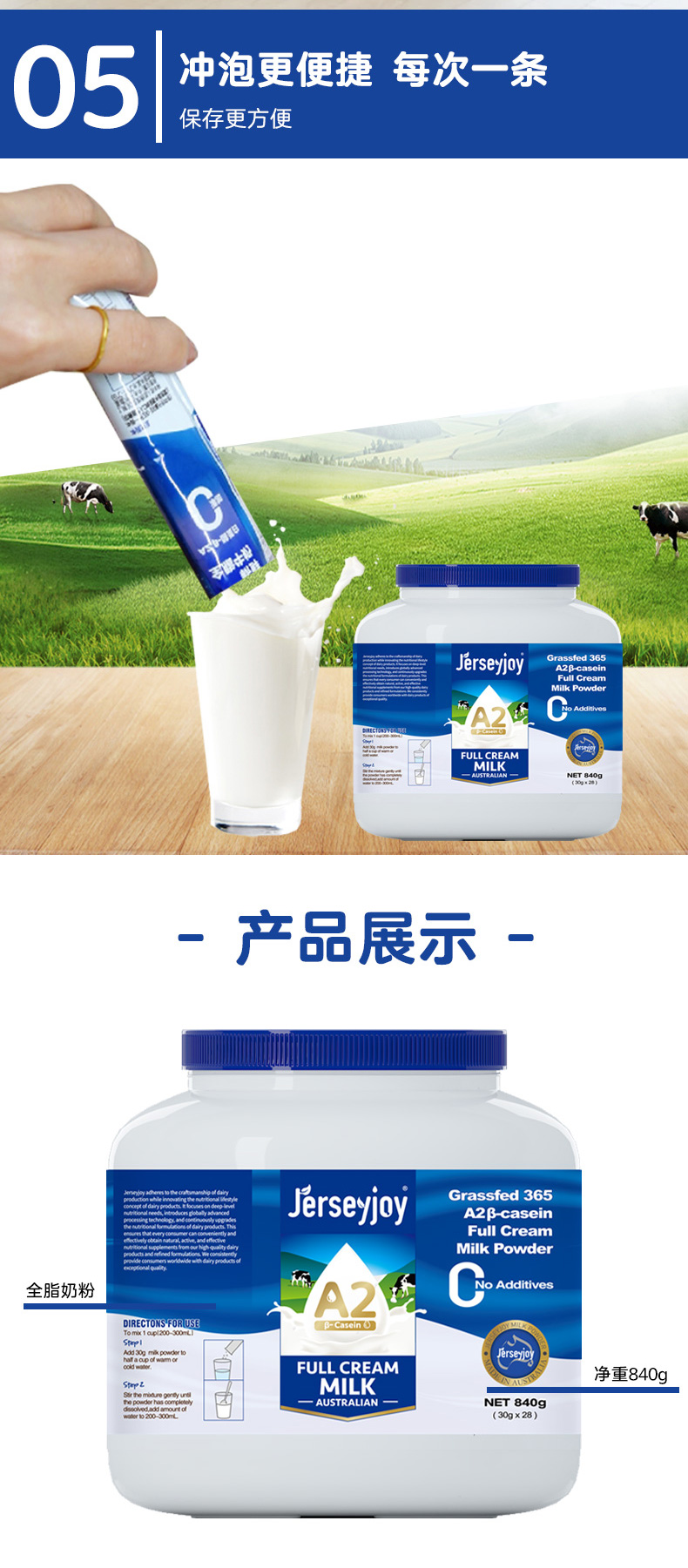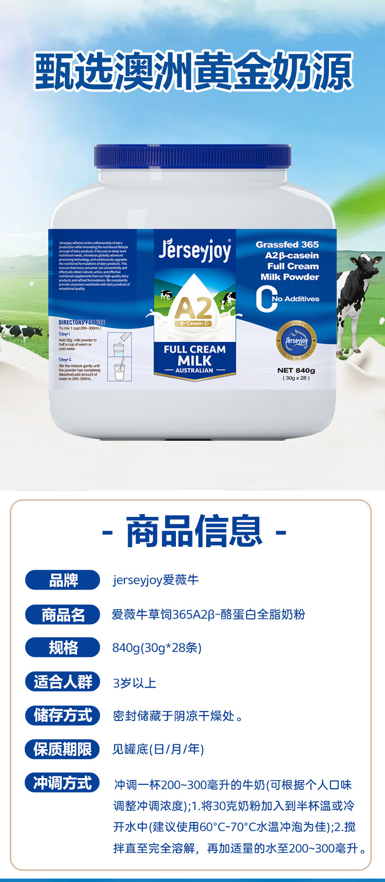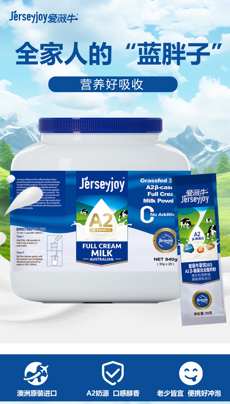 澳洲爱薇牛 草饲365全脂奶粉罐装(30g*28条)840g