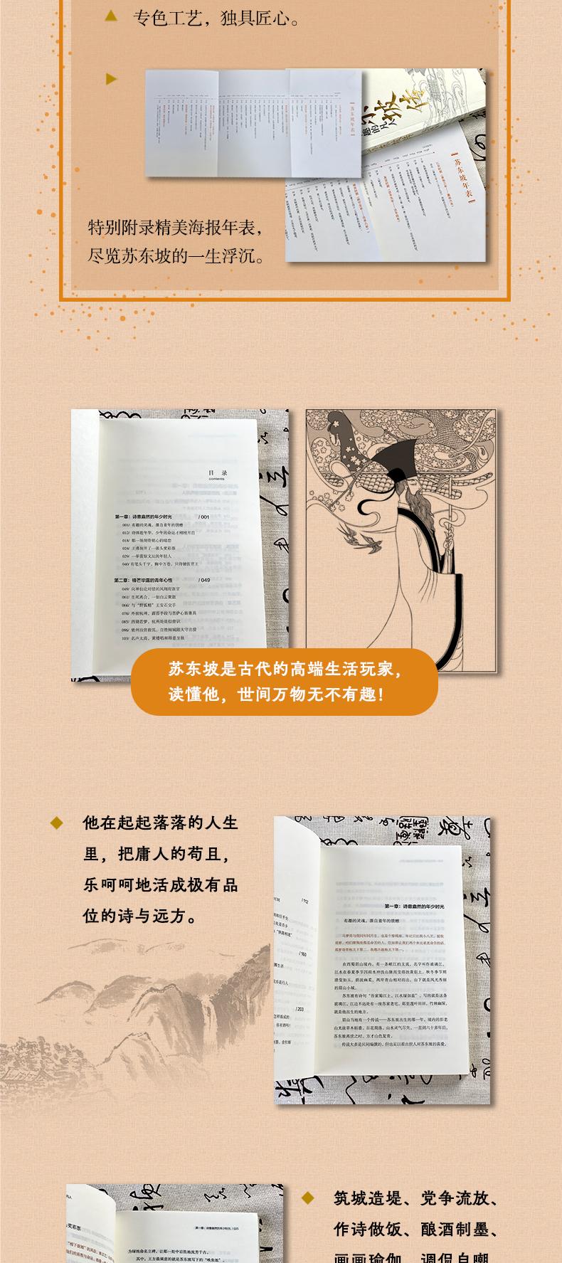 1、一本书读懂千古大词人苏东坡的一生。有才得“要死”,有趣得“要命”!书中资料详尽,挑选优美诗词。2、知名传记作家纪云裳文笔优美,所写内容均经过严谨考证,还原了一个通透有趣的苏东坡。3、特别附录精美海报年表,从出生到离世,写尽苏东坡的一生浮沉。4、人生缘何不快乐,只因未读苏东坡。高端生活玩家苏轼,读懂他,世间万物无不有趣!
